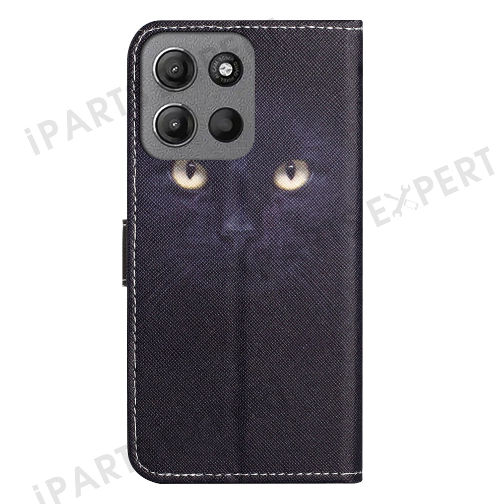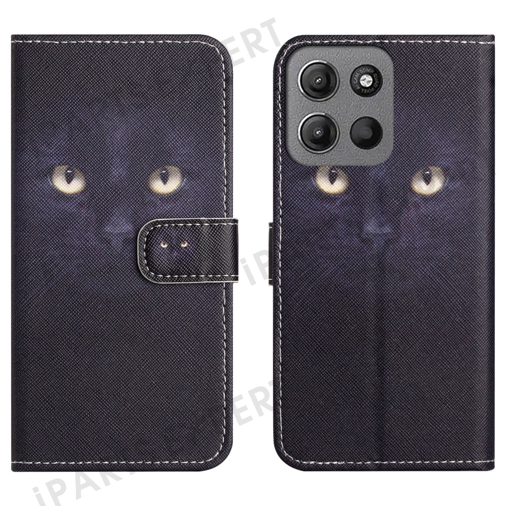 For Motorola Moto G15 4G / G15 Power 4G Case Pattern Print PU Leather Wallet Phone Cover Cross Texture - Cat's Eye