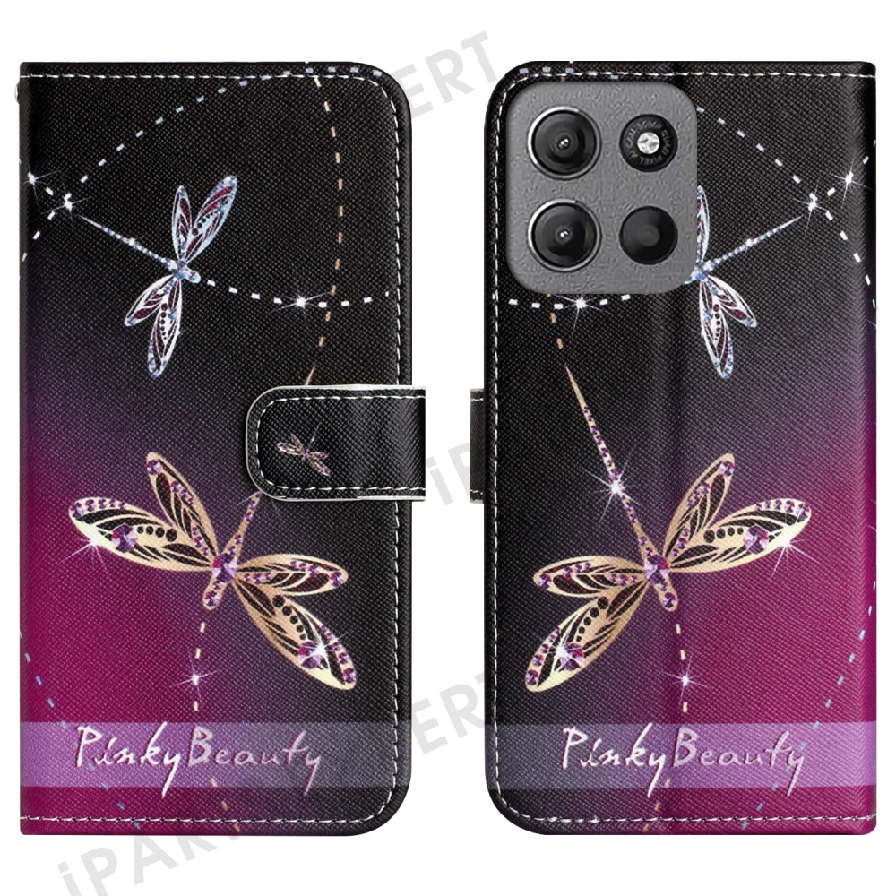 For Motorola Moto G15 4G / G15 Power 4G Case Pattern Print PU Leather Wallet Phone Cover Cross Texture - Dragonfly