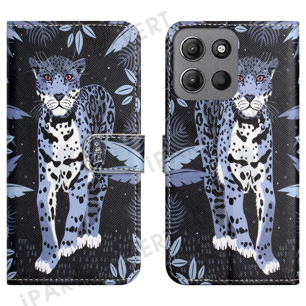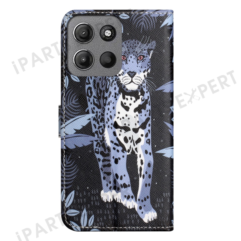 For Motorola Moto G15 4G / G15 Power 4G Case Pattern Print PU Leather Wallet Phone Cover Cross Texture - Leopard