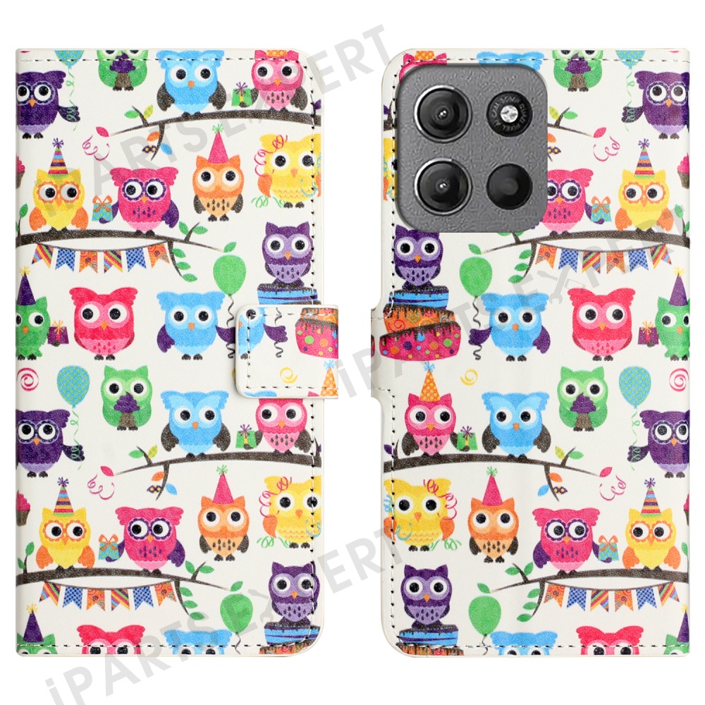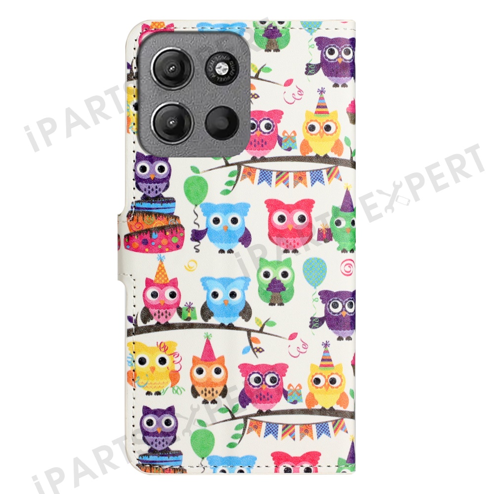 For Motorola Moto G17 Power 4G / G17 4G / G15 4G / G15 Power 4G Case Pattern Print PU Leather Wallet Phone Cover - Owls Sticker