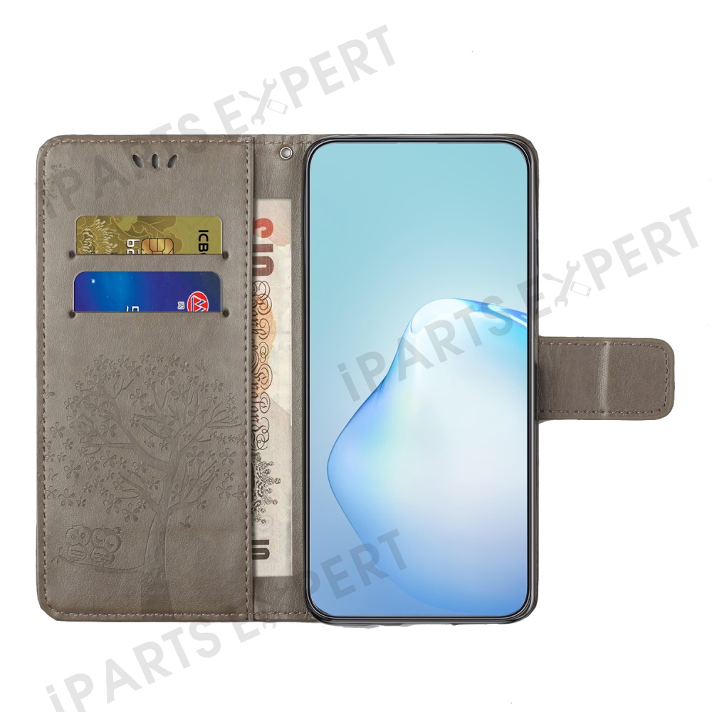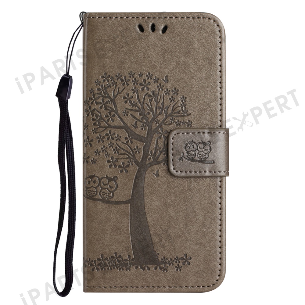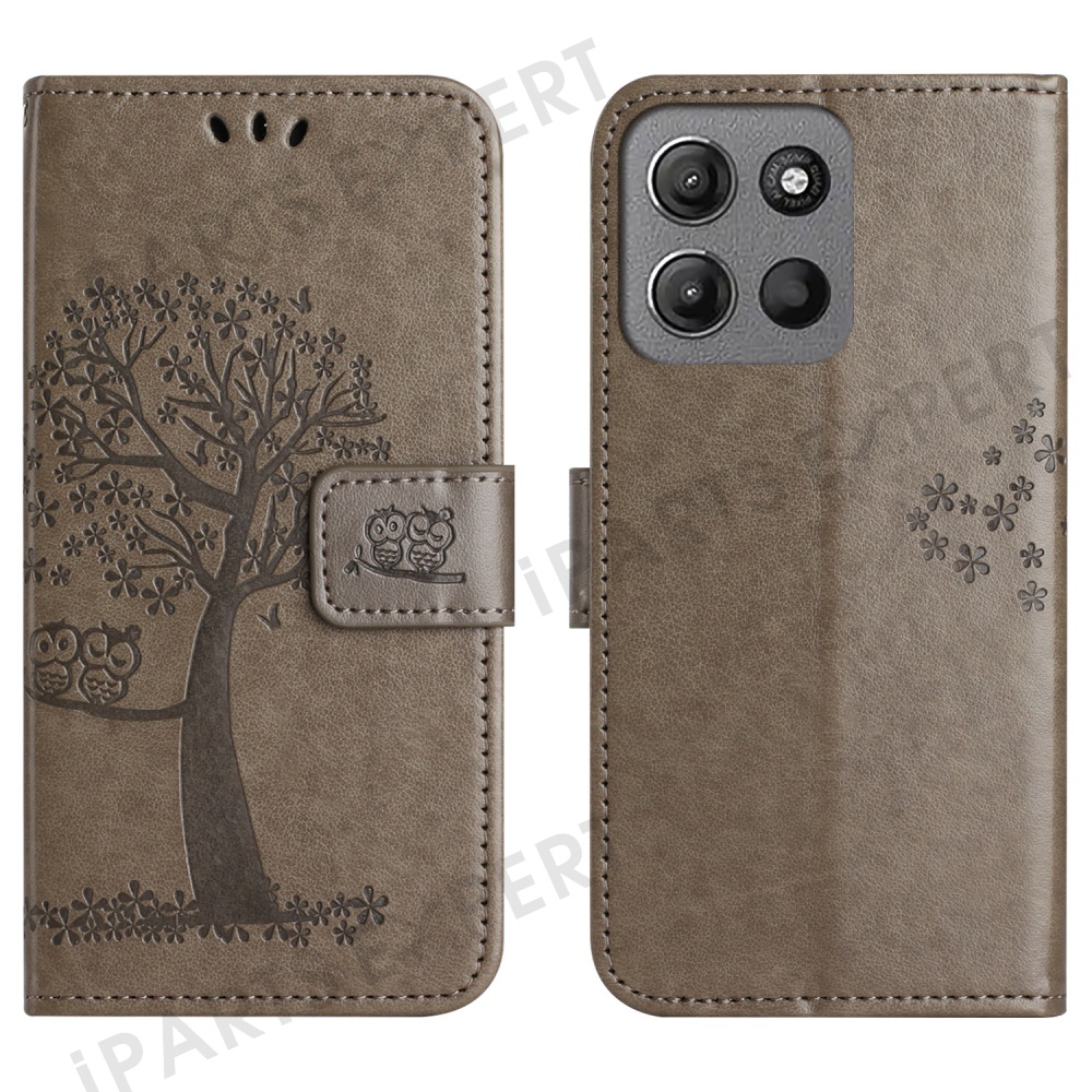 For Motorola Moto G15 4G / G15 Power 4G Case PU Leather Owl Tree Imprinted Wallet Phone Cover - Grey