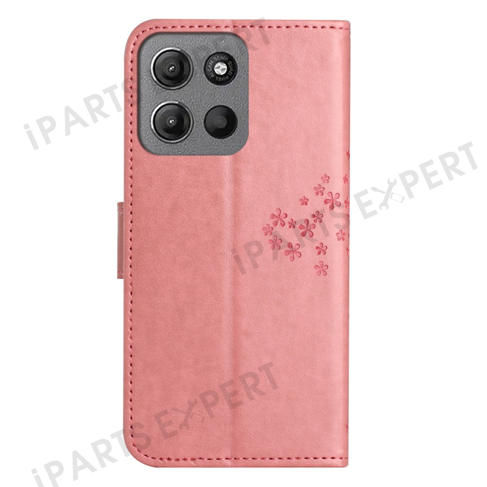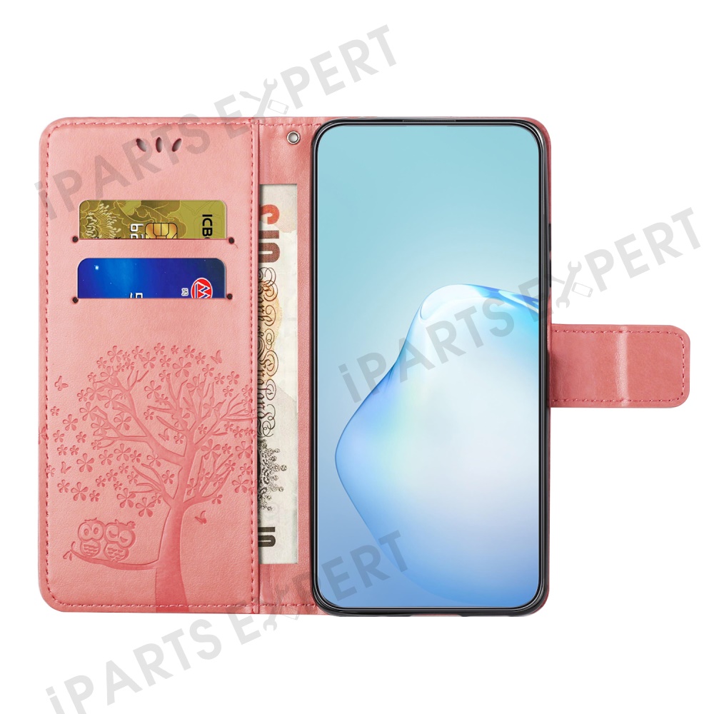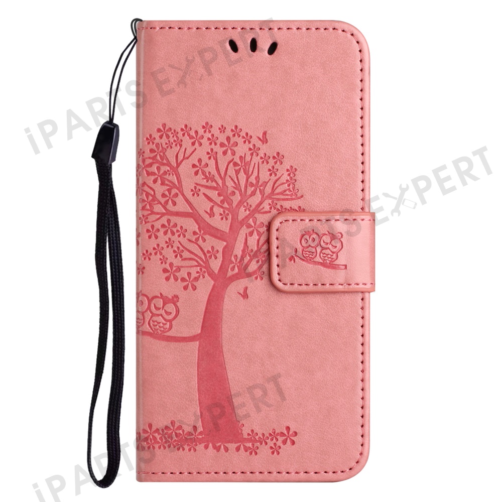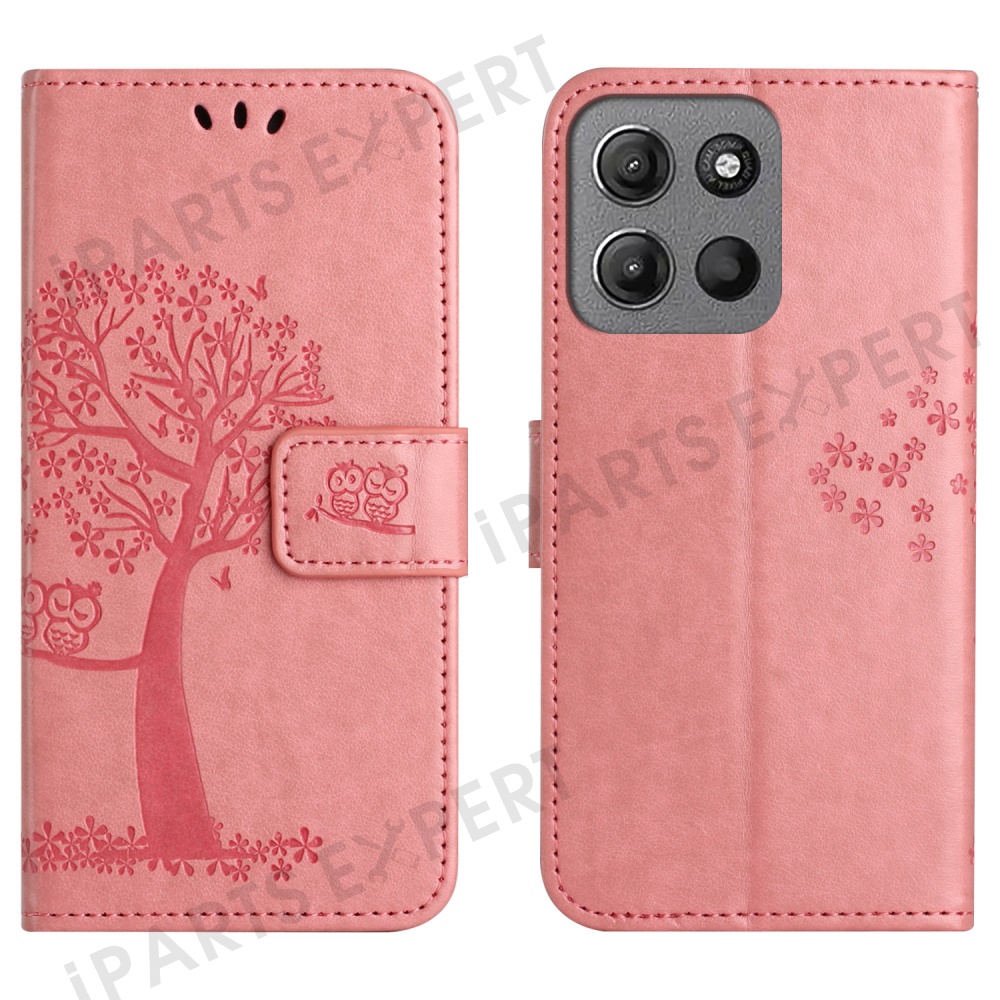 For Motorola Moto G15 4G / G15 Power 4G Case PU Leather Owl Tree Imprinted Wallet Phone Cover - Pink