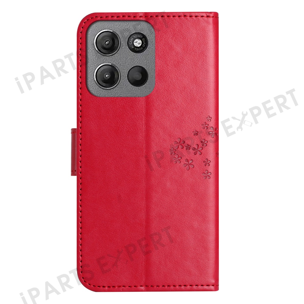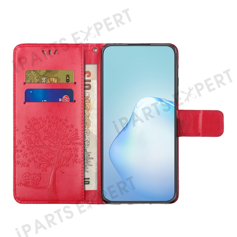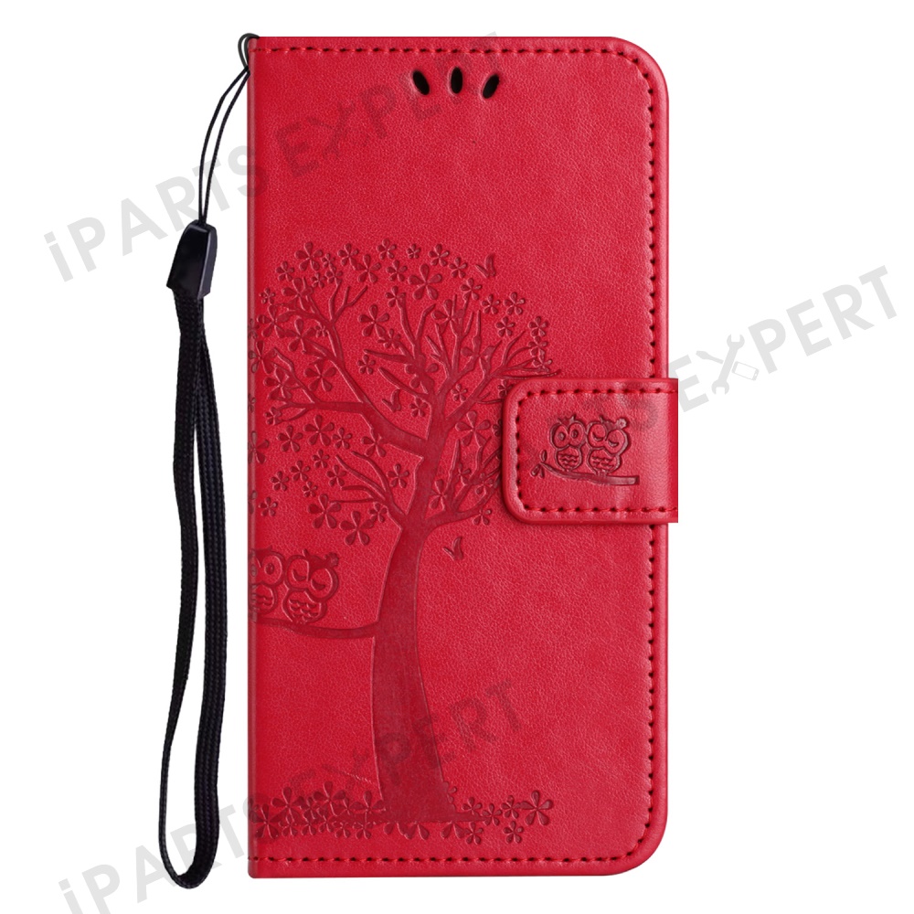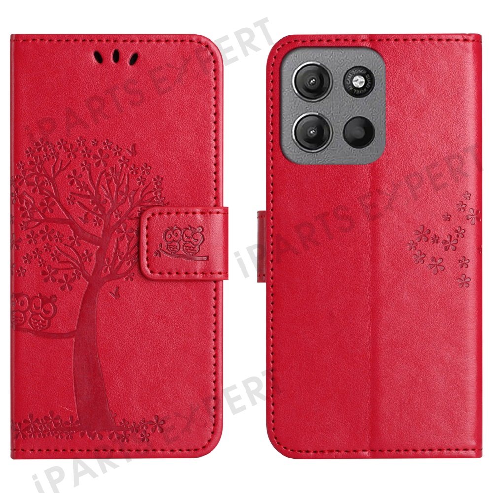 For Motorola Moto G15 4G / G15 Power 4G Case PU Leather Owl Tree Imprinted Wallet Phone Cover - Red