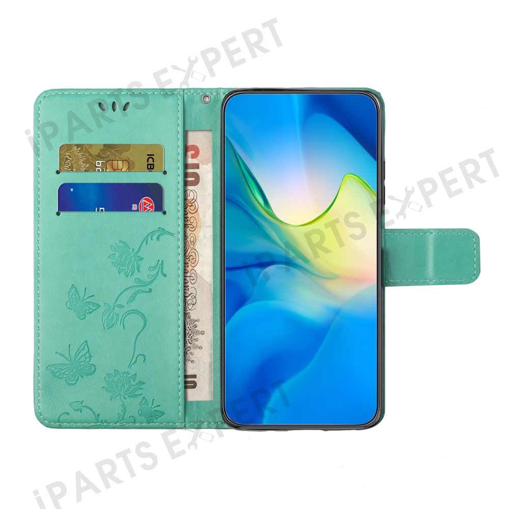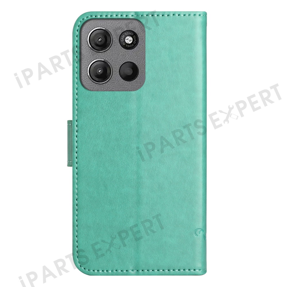 For Motorola Moto G15 4G / G15 Power 4G Case Wallet Stand Imprinted Butterfly Flower PU Leather Phone Cover - Cyan