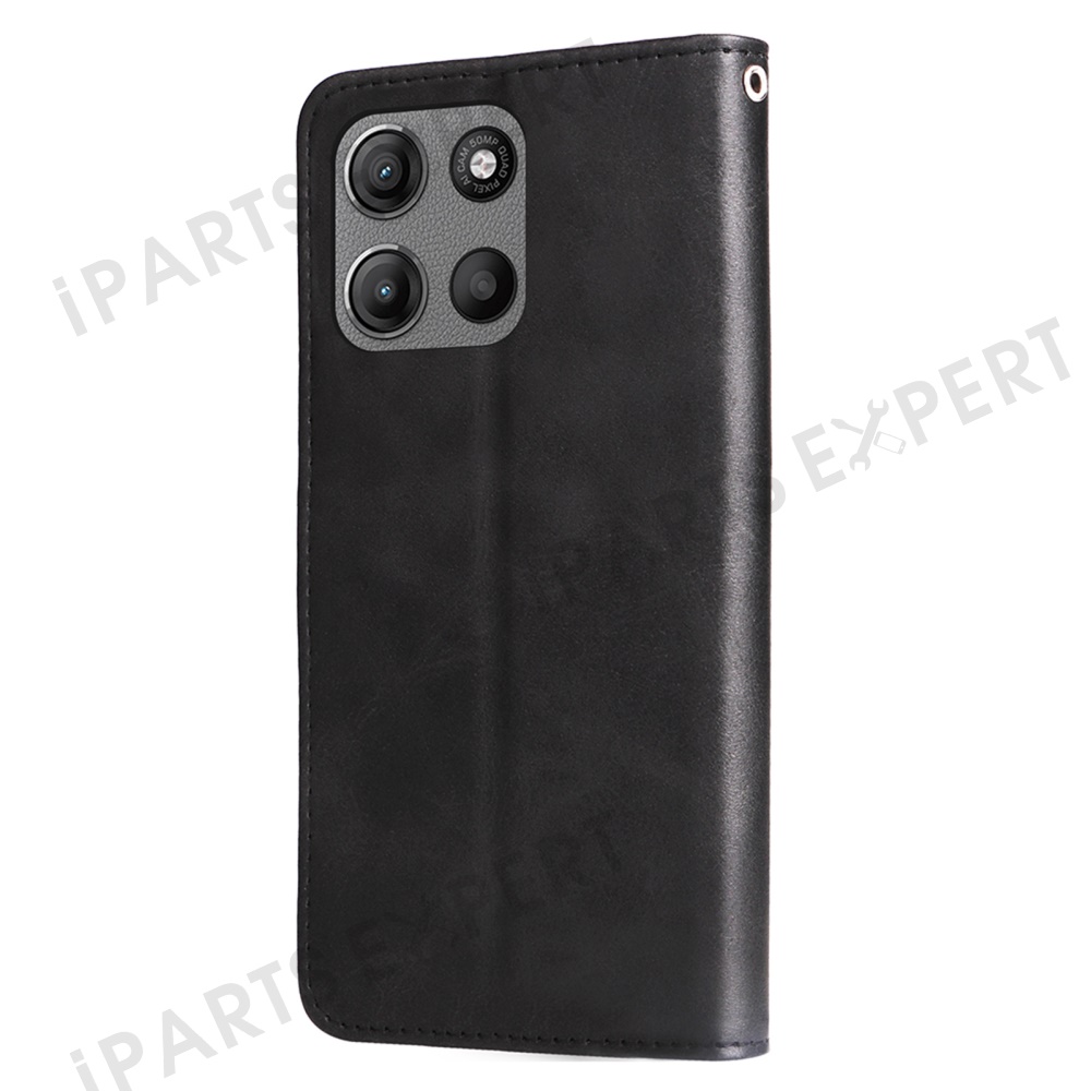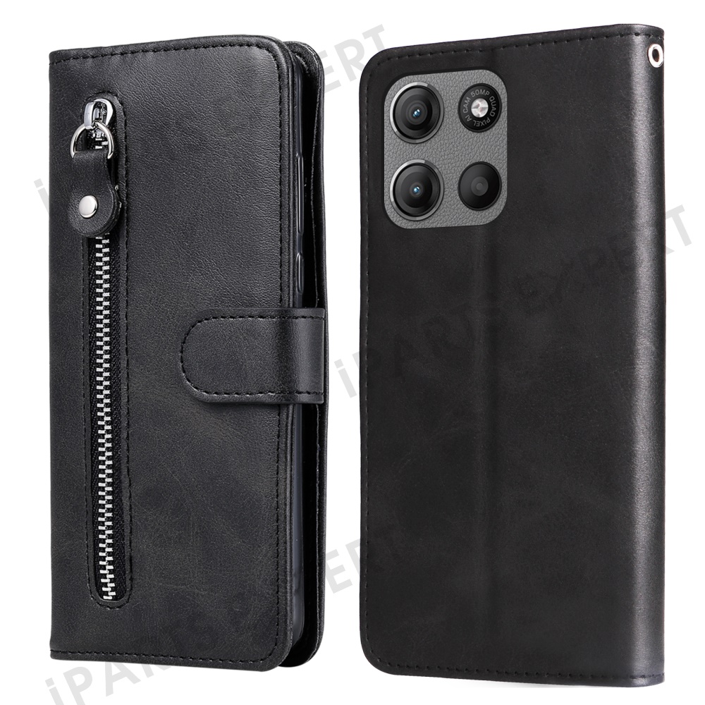 For Motorola Moto G15 4G / G15 Power 4G Case Zipper Wallet Calf Texture PU Leather Phone Cover - Black