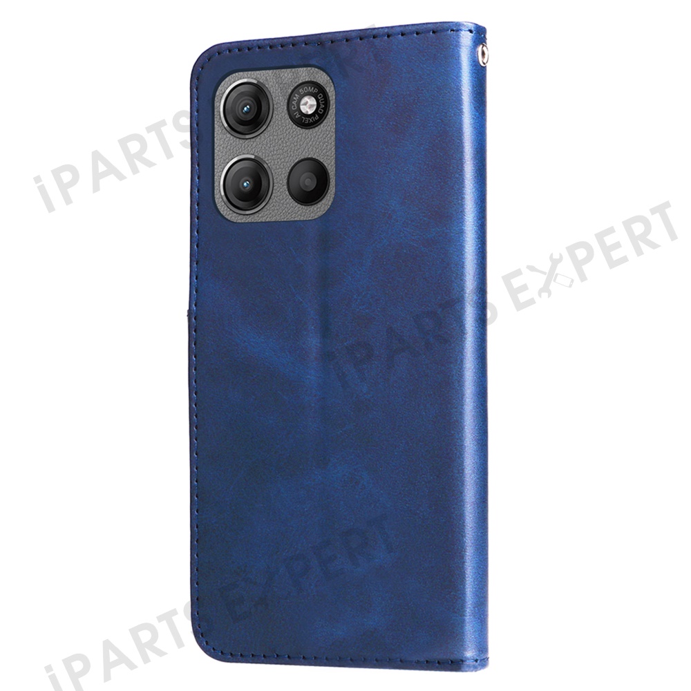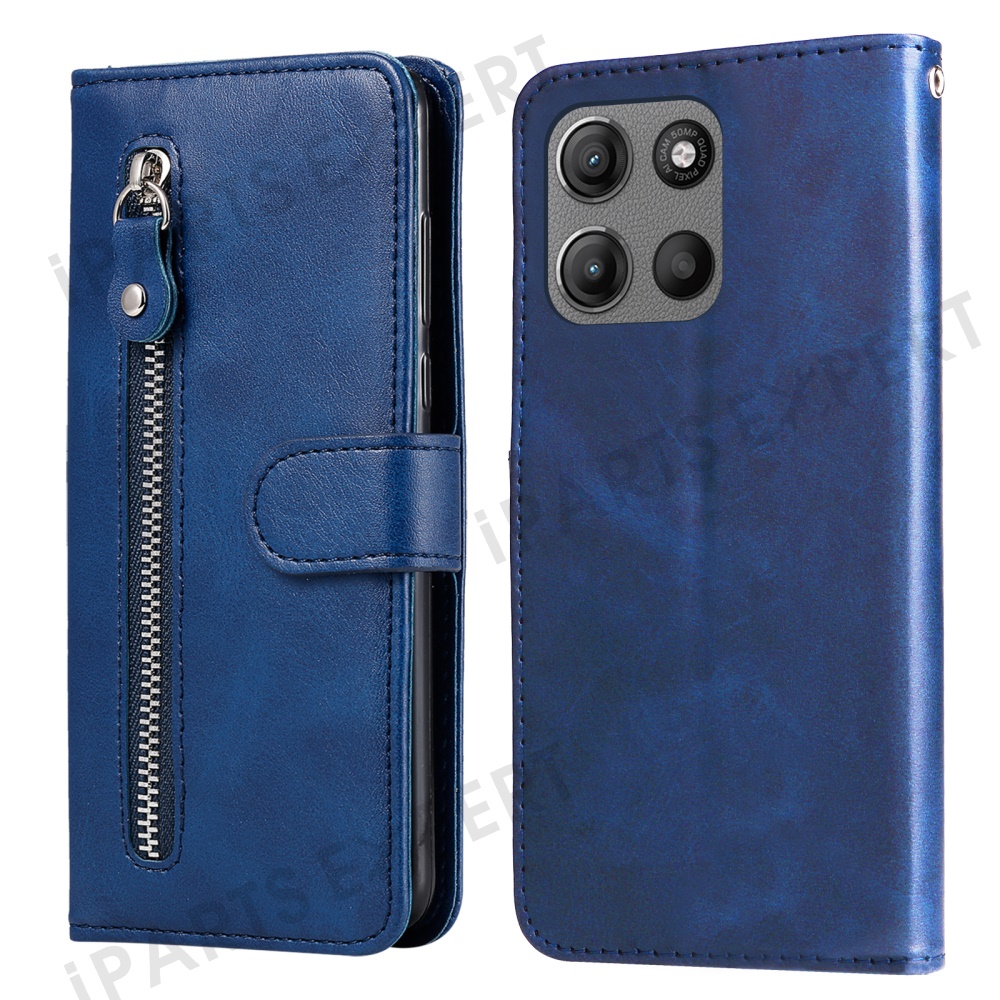 For Motorola Moto G15 4G / G15 Power 4G Case Zipper Wallet Calf Texture PU Leather Phone Cover - Blue