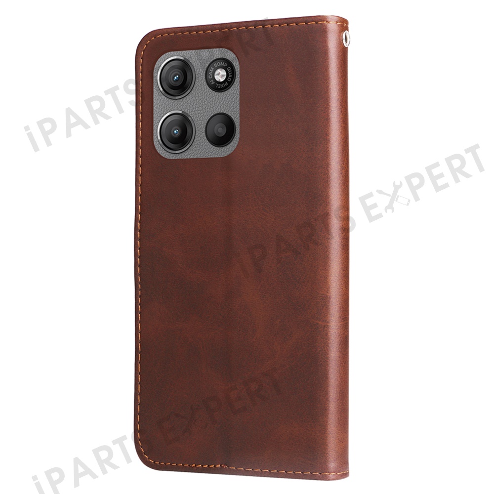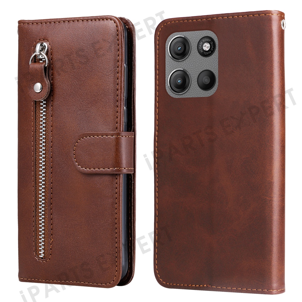For Motorola Moto G15 4G / G15 Power 4G Case Zipper Wallet Calf Texture PU Leather Phone Cover - Brown