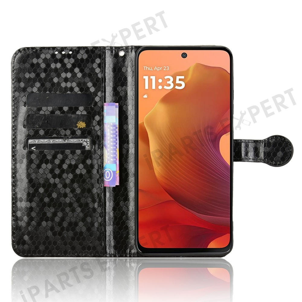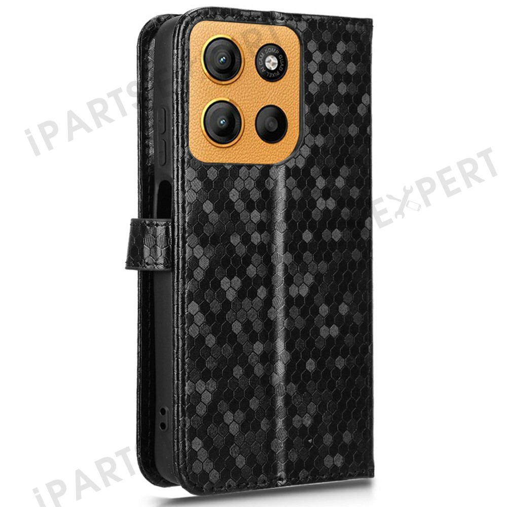 For Motorola Moto G17 Power 4G / G17 4G / G15 4G / G15 Power 4G Wallet Case Dot Pattern Imprint PU Leather Phone Cover - Black