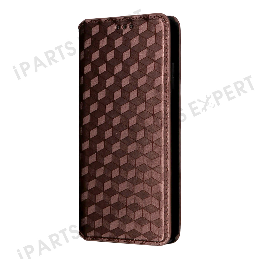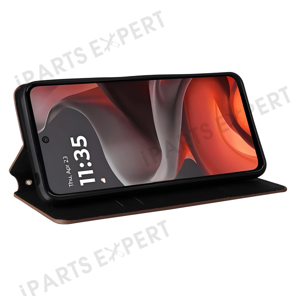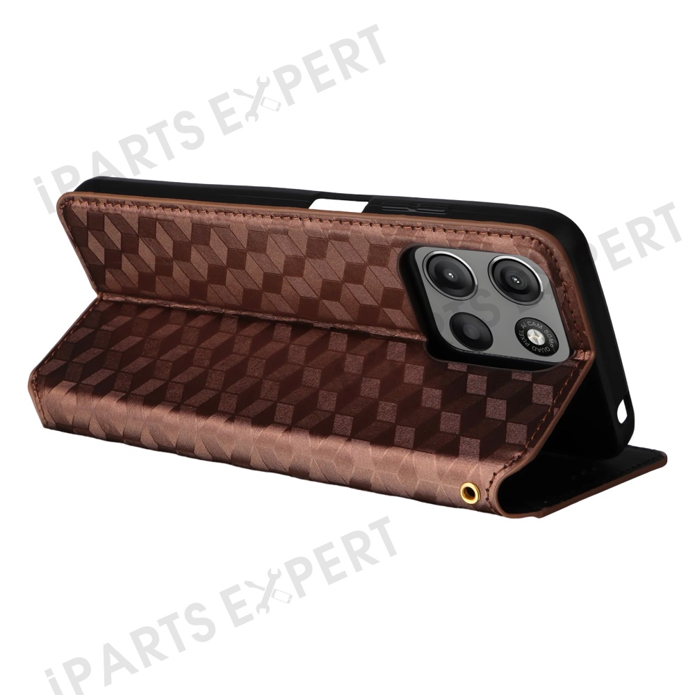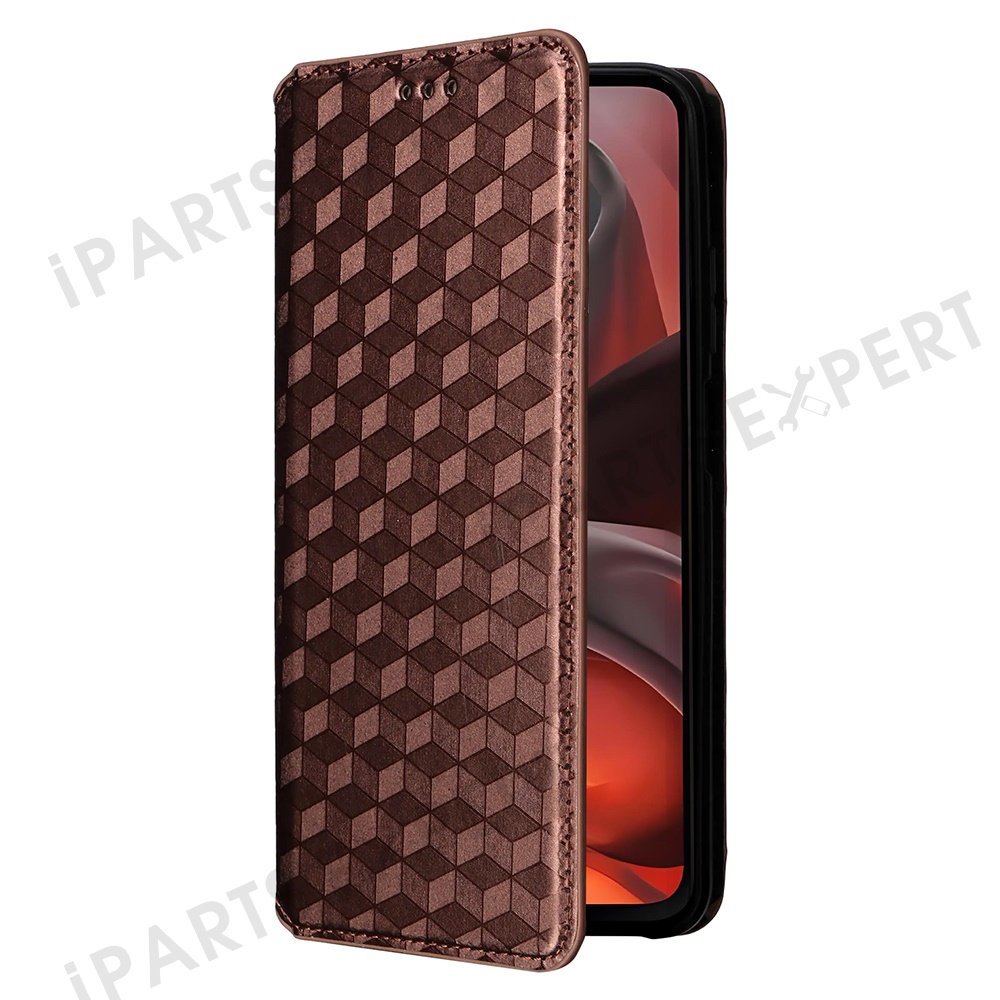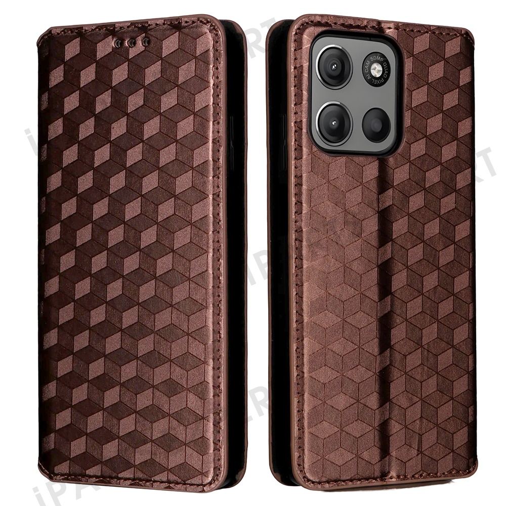 For Motorola Moto G15 Power 4G / G15 4G Wallet Case Rhombus Imprinted Leather Phone Cover - Brown