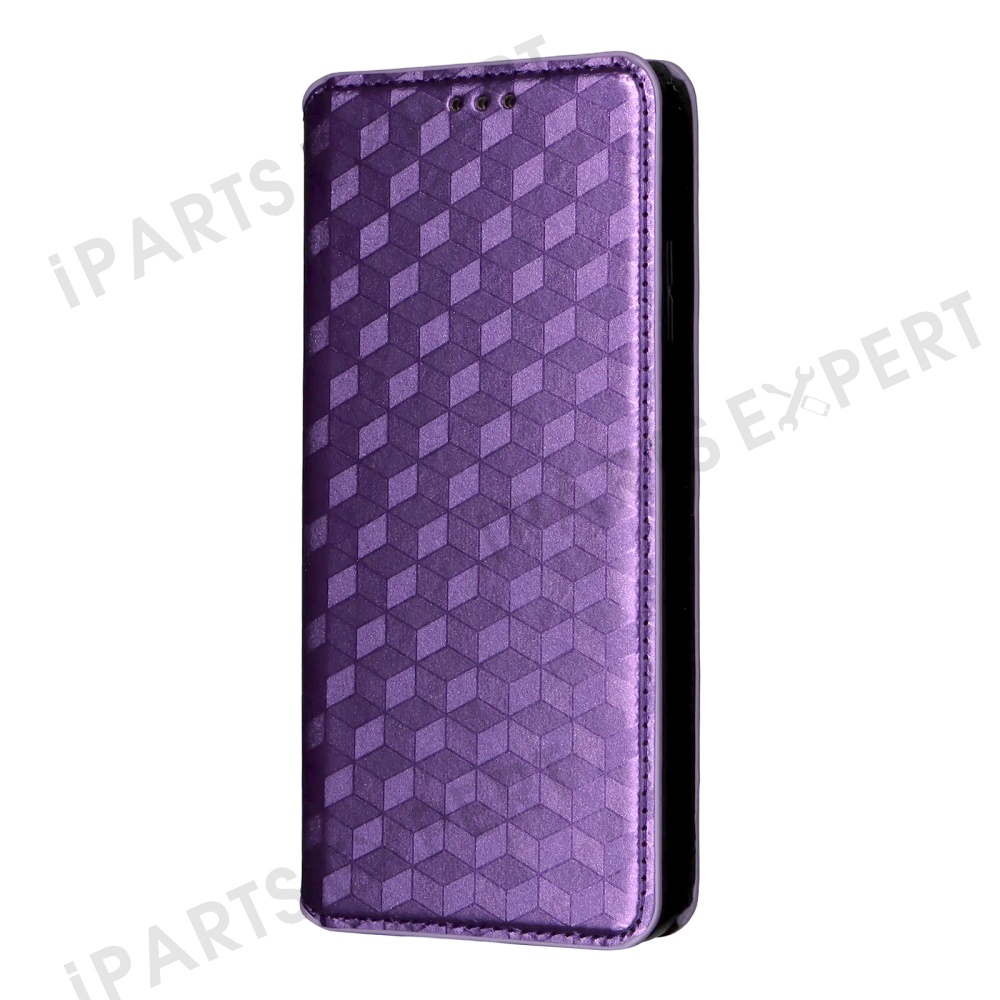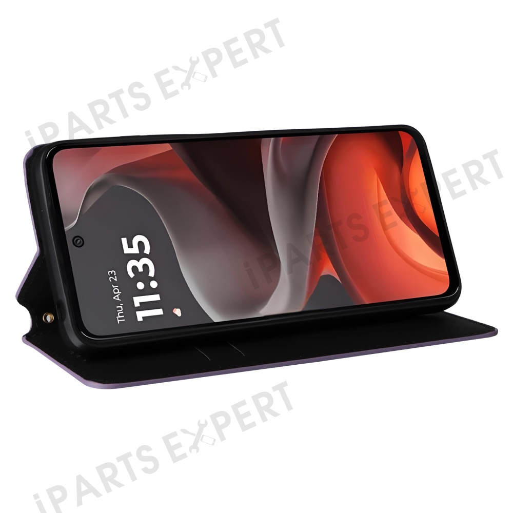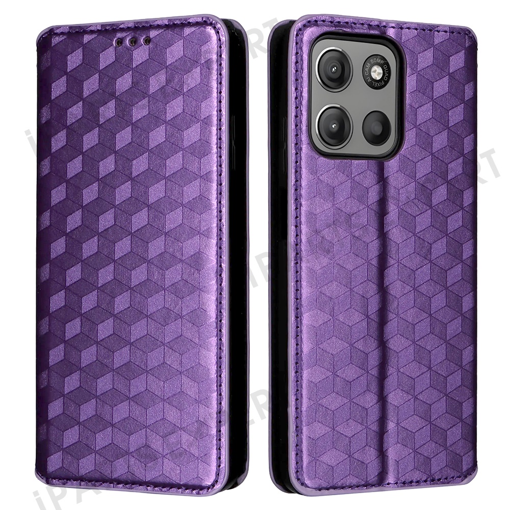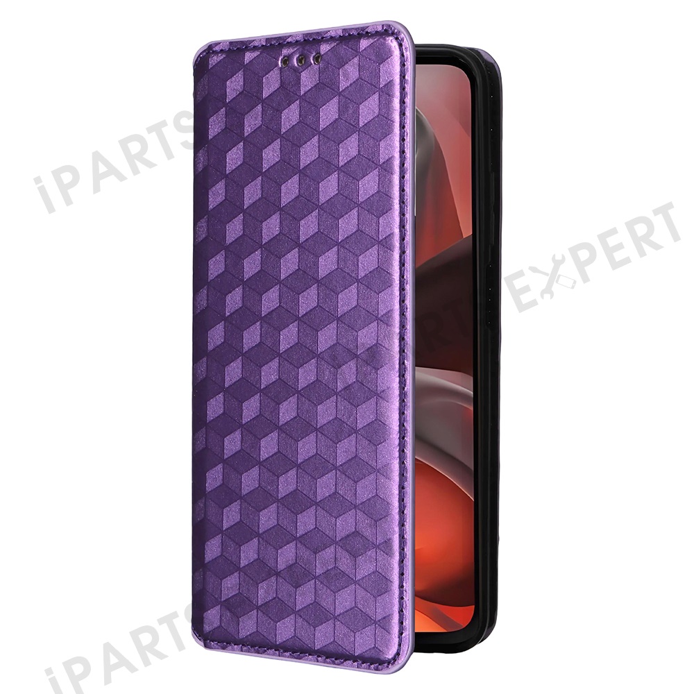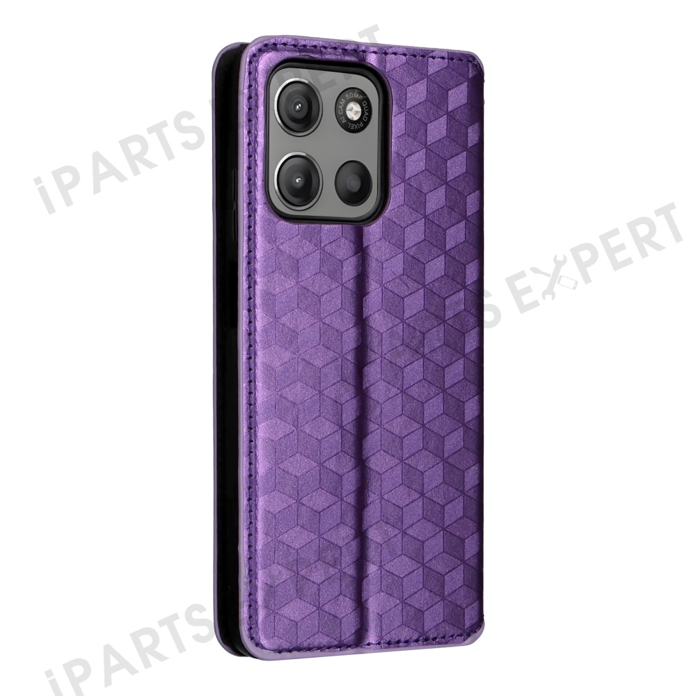 For Motorola Moto G15 Power 4G / G15 4G Wallet Case Rhombus Imprinted Leather Phone Cover - Purple