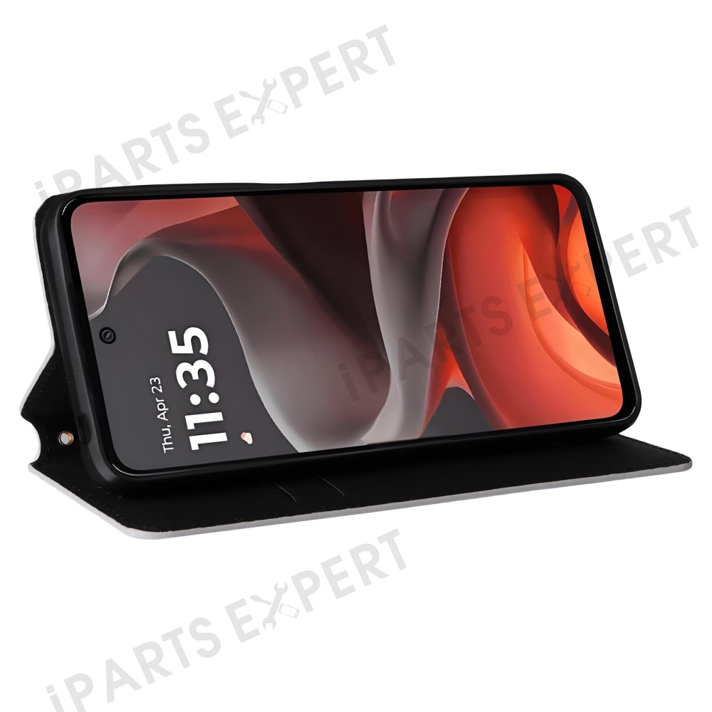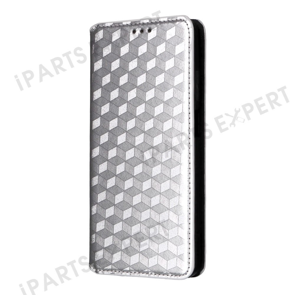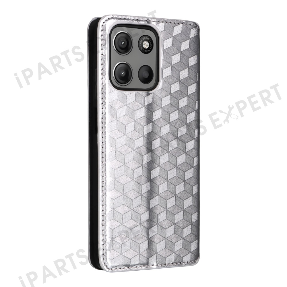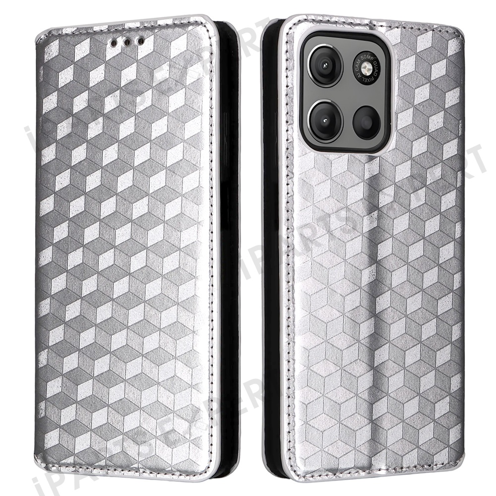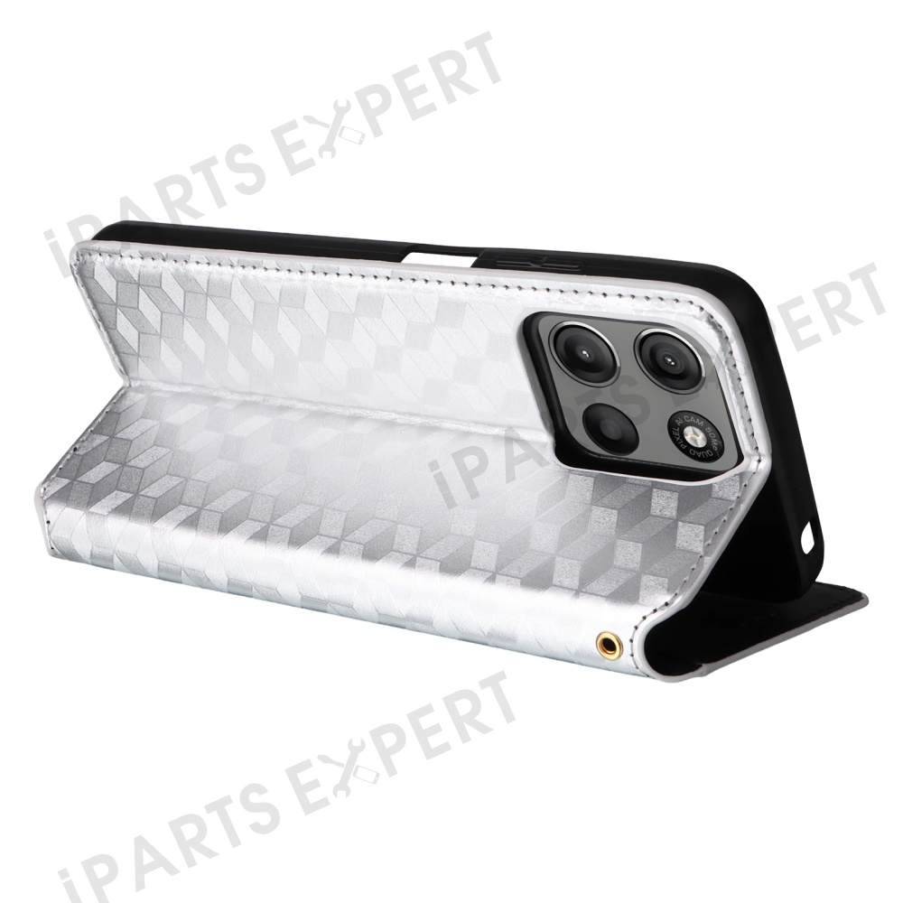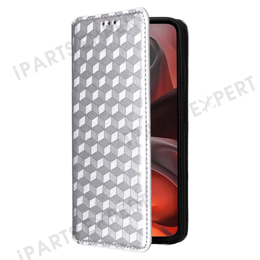 For Motorola Moto G15 Power 4G / G15 4G Wallet Case Rhombus Imprinted Leather Phone Cover - Silver