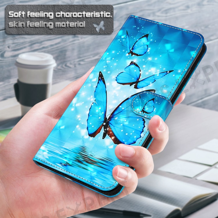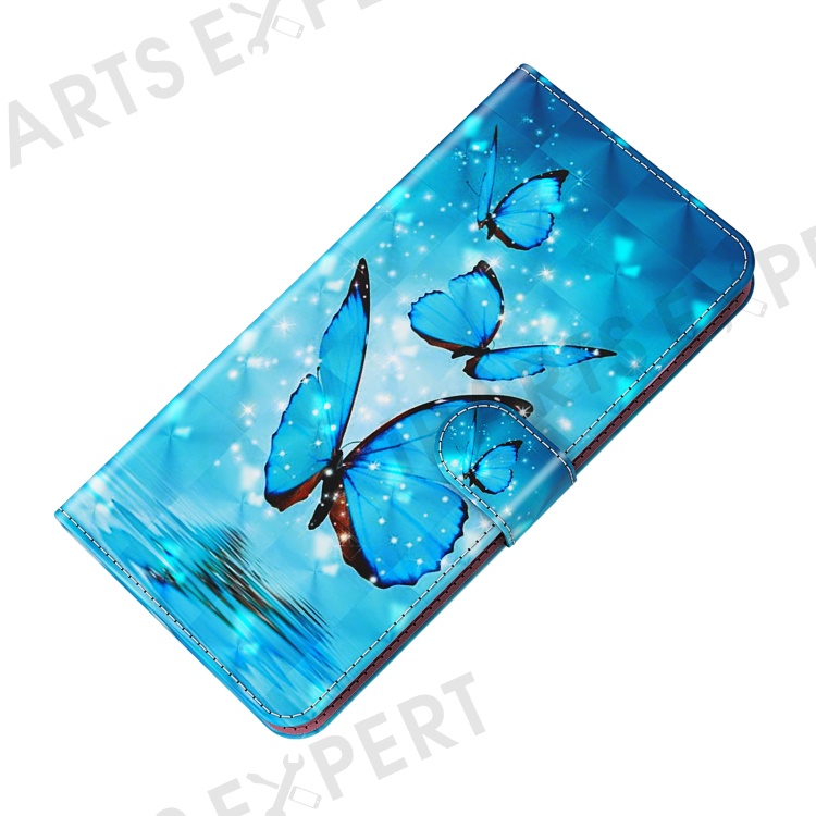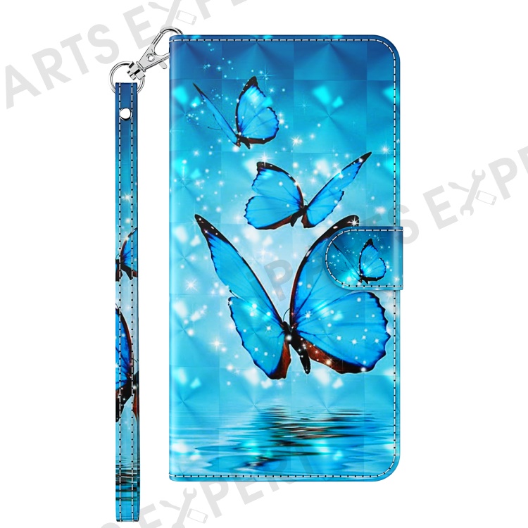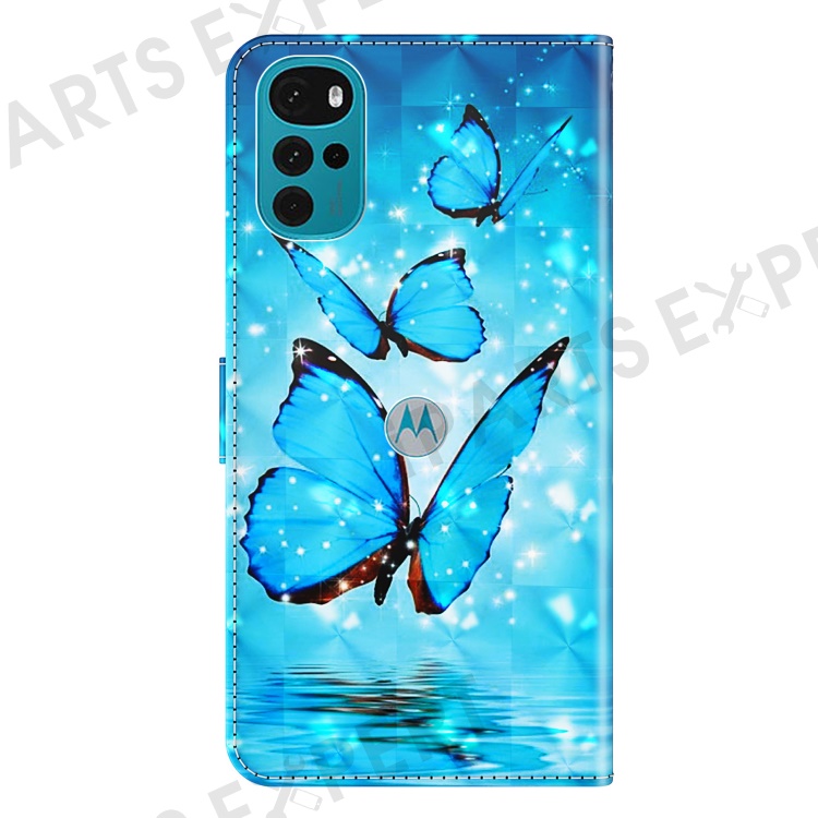 For Motorola Moto G22 / Moto E32s 4G PU Leather Wallet Flip Cover Magnetic Closure Stand Folio 3D Creative Pattern Printing Phone Case with Strap - Blue Butterflies