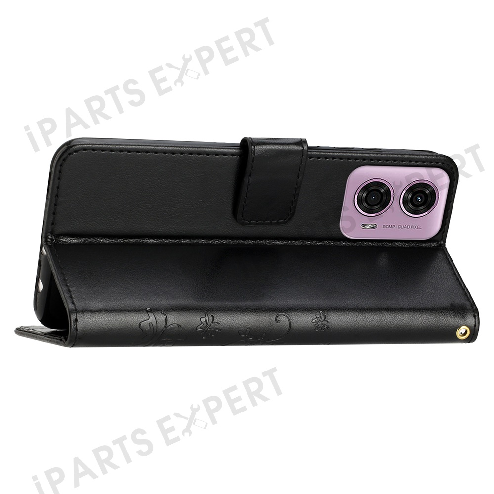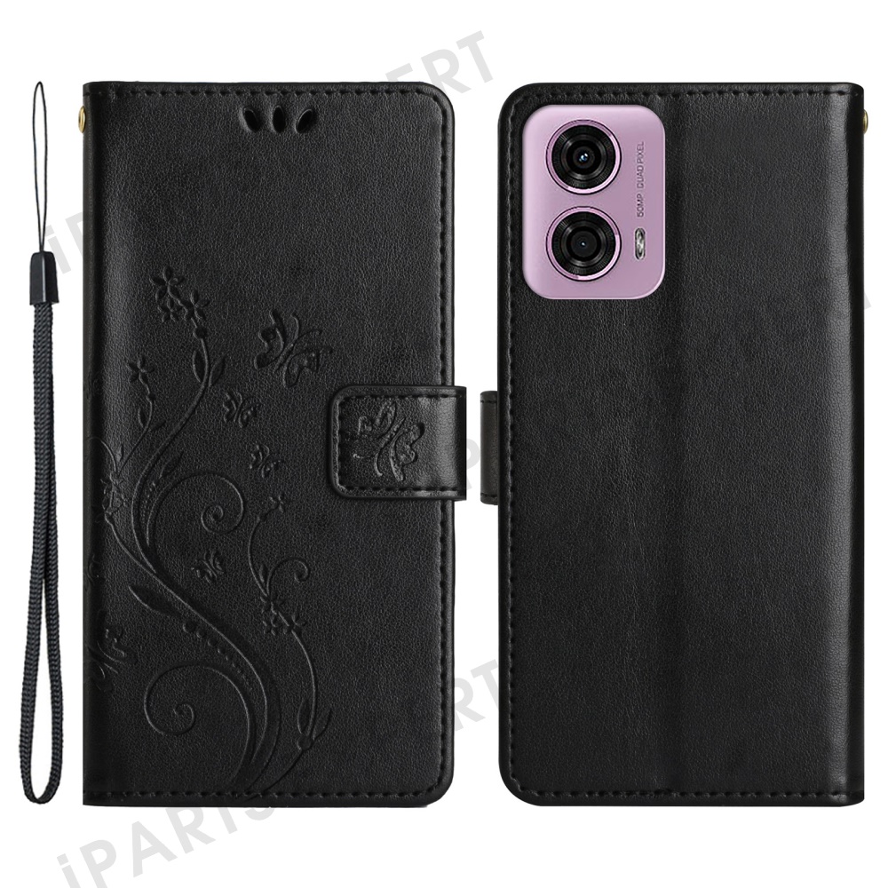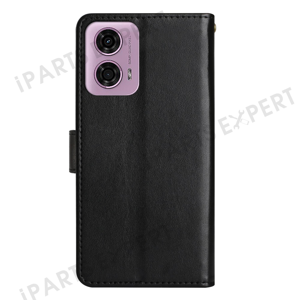 For Motorola Moto G34 5G Case PU Leather Phone Wallet Cover with Strap - Black