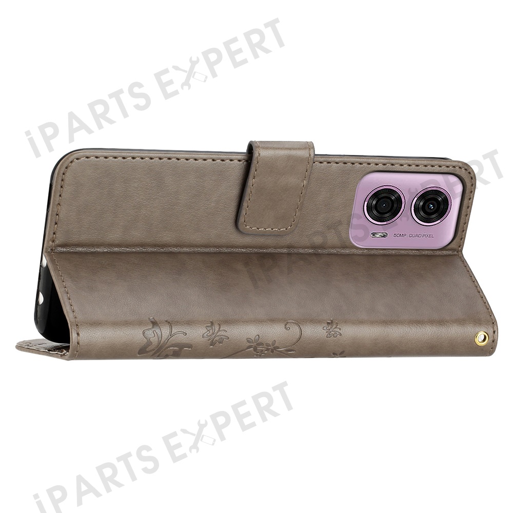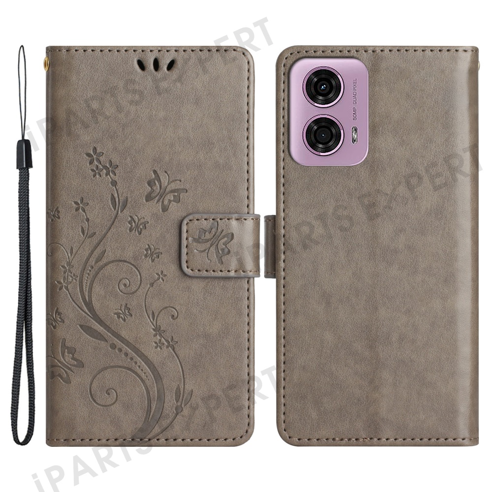 For Motorola Moto G34 5G Case PU Leather Phone Wallet Cover with Strap - Grey