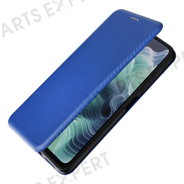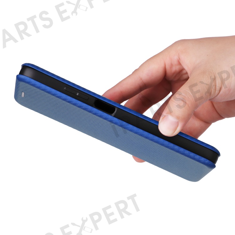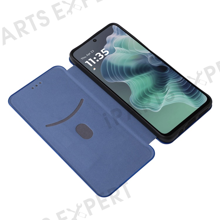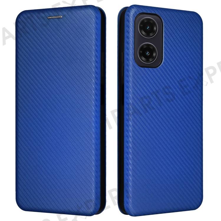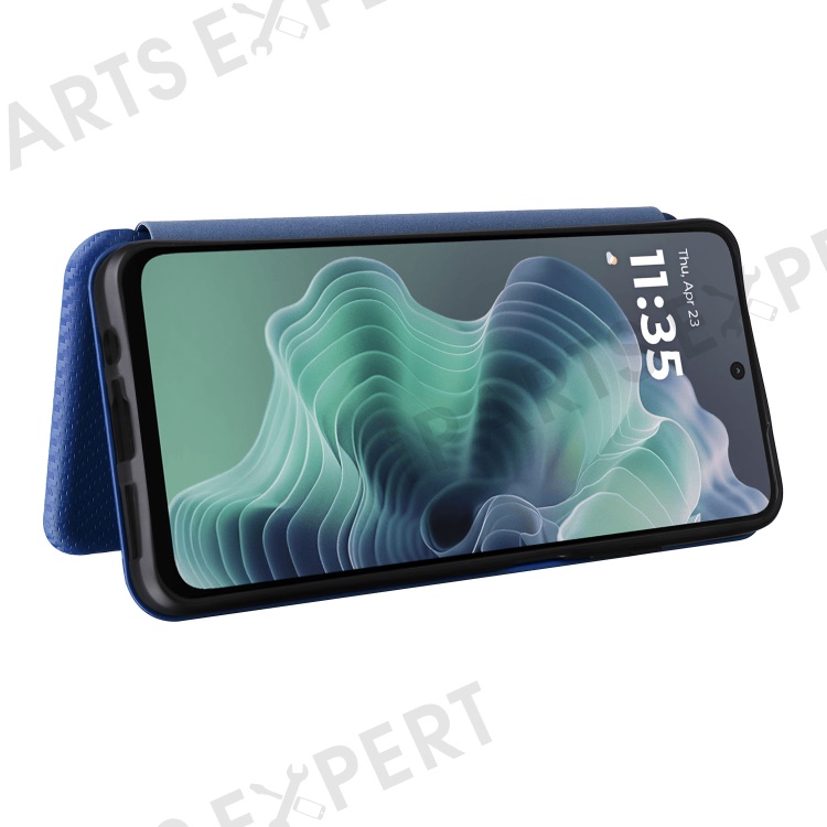 For Motorola Moto G35 5G Case Carbon Fiber Texture Drop-Proof PU Leather Phone Cover - Blue