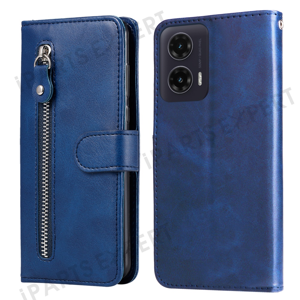 For Motorola Moto G35 5G Case Zipper Wallet Calf Texture PU Leather Phone Cover - Blue