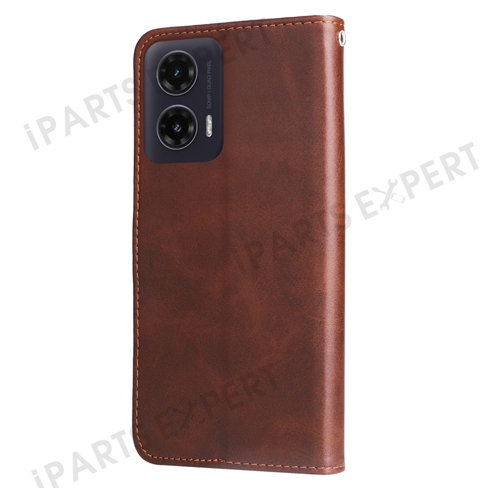 For Motorola Moto G35 5G Case Zipper Wallet Calf Texture PU Leather Phone Cover - Brown