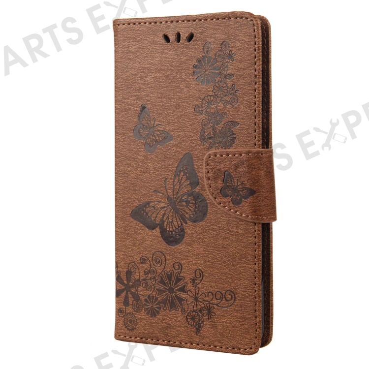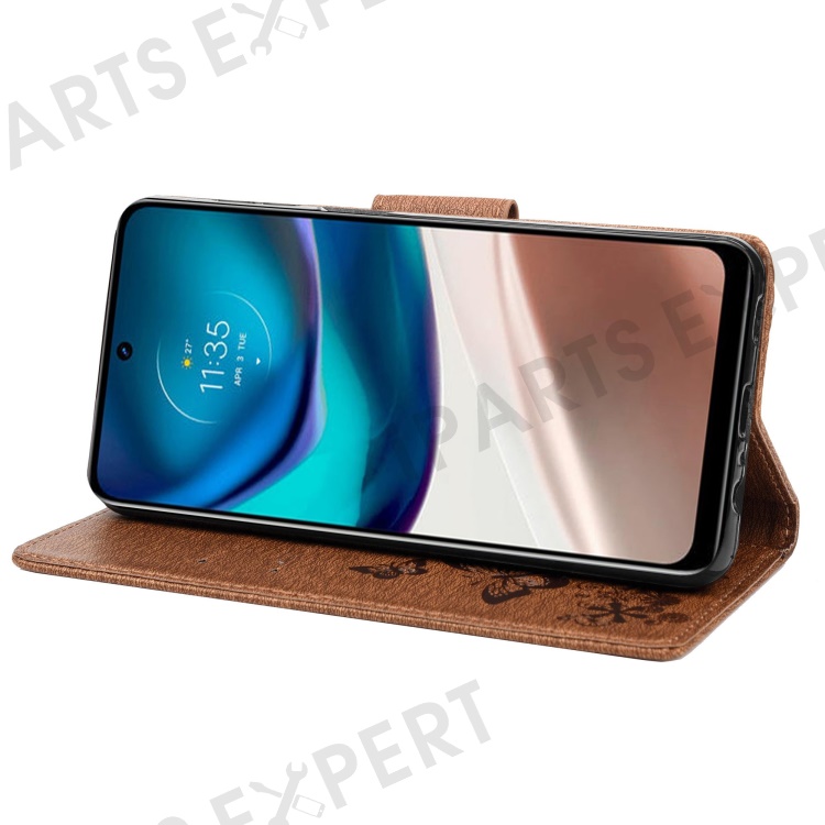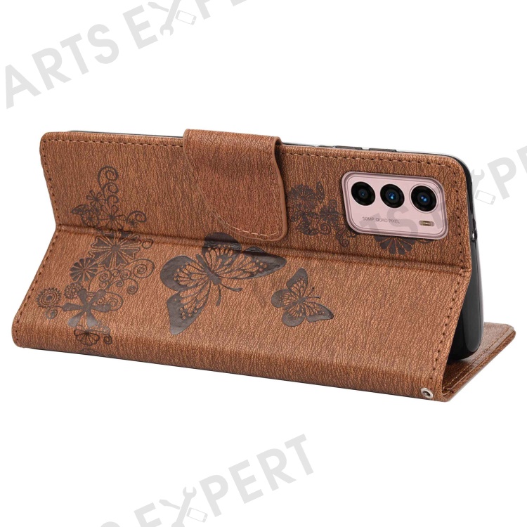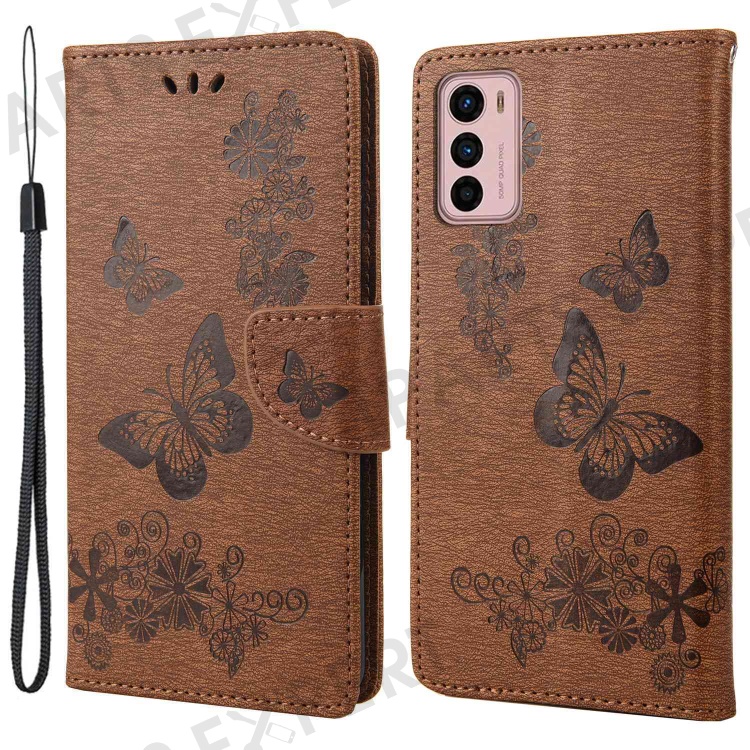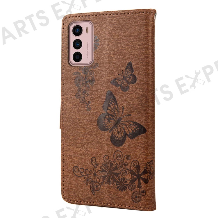 For Motorola Moto G42 4G PU Leather Case Big Butterflies Flower Pattern Imprinting Full Protection Stand Wallet Cover with Strap - Brown