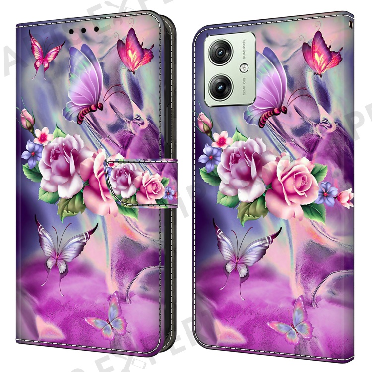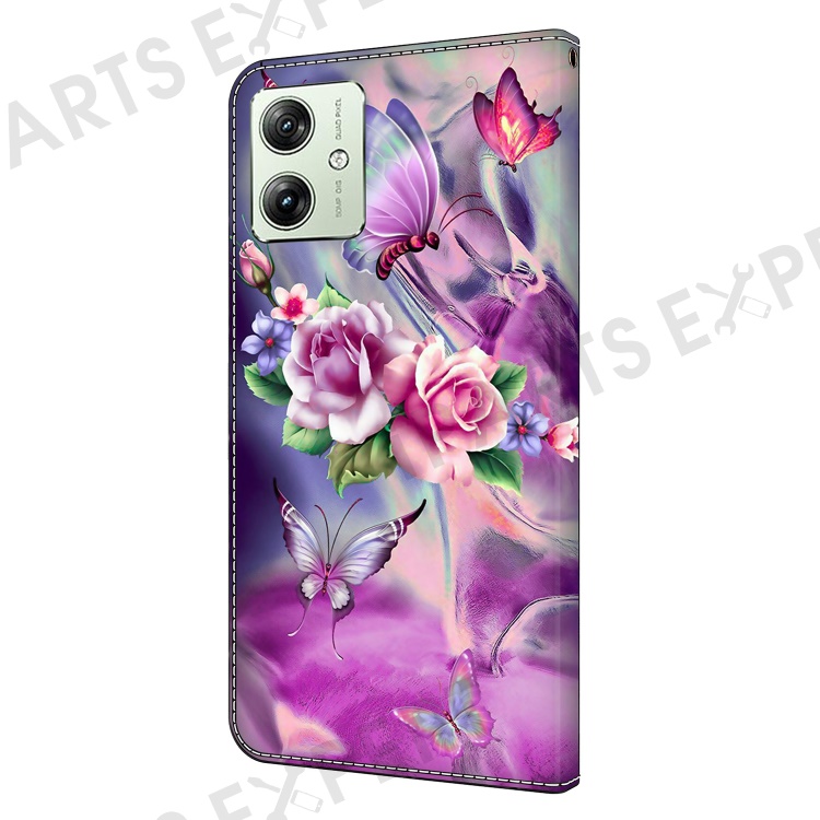 For Motorola Moto G54 5G Case PU Leather Wallet 3D Pattern Phone Cover - Butterflies / Flowers