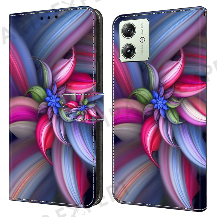 For Motorola Moto G54 5G Case PU Leather Wallet 3D Pattern Phone Cover - Colorful Flowers
