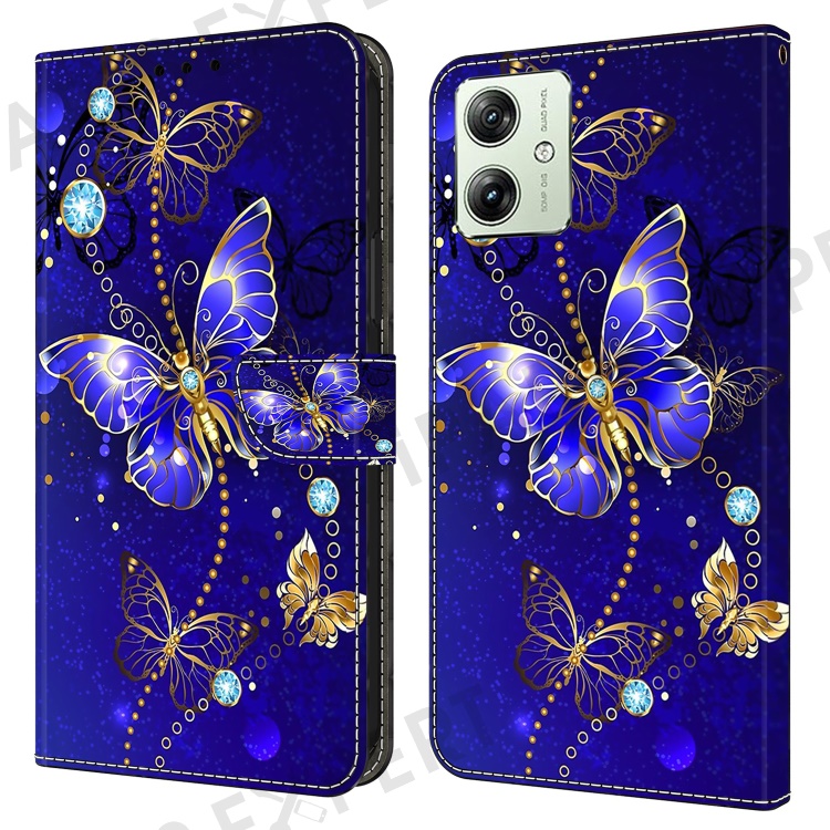 For Motorola Moto G54 5G Case PU Leather Wallet 3D Pattern Phone Cover - Diamond Butterfly