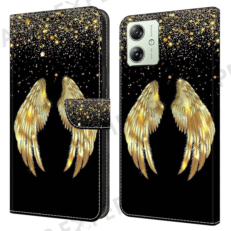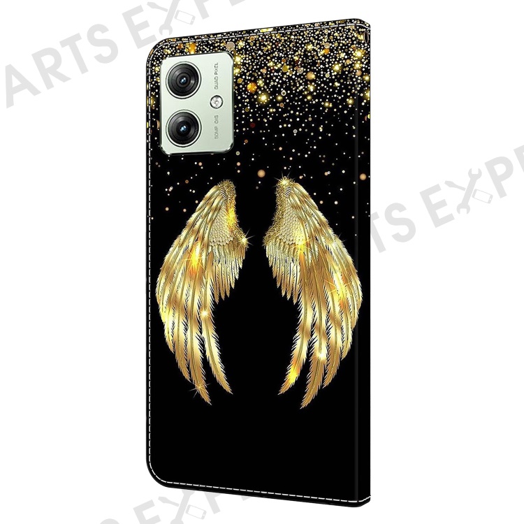 For Motorola Moto G54 5G Case PU Leather Wallet 3D Pattern Phone Cover - Gold Wing