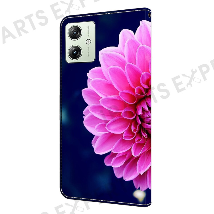 For Motorola Moto G54 5G Case PU Leather Wallet 3D Pattern Phone Cover - Pink Flowers