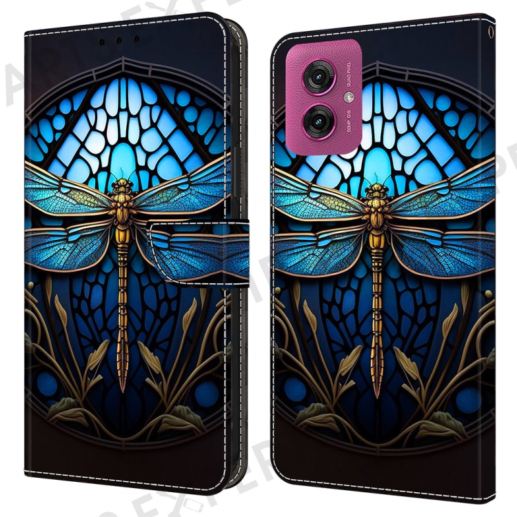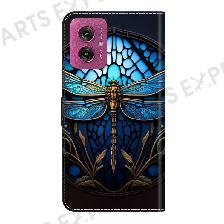 For Motorola Moto G55 5G Case Pattern Printed Protective Cover TPU+PU Leather Flip Phone Case - Blue Dragonfly