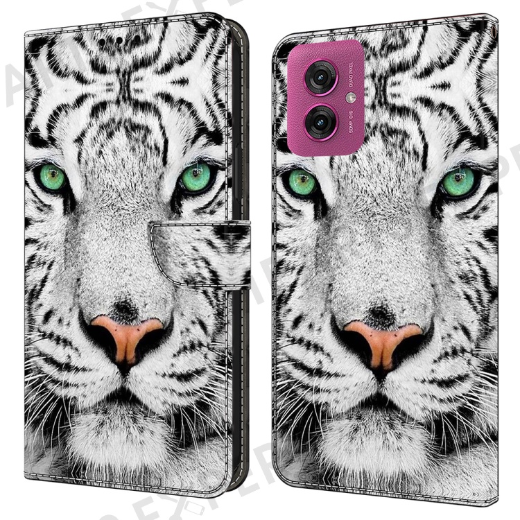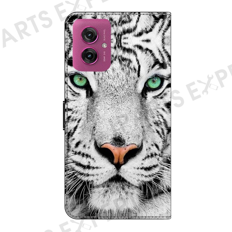 For Motorola Moto G55 5G Case Pattern Printed Protective Cover TPU+PU Leather Flip Phone Case - Tiger Face