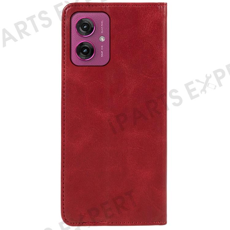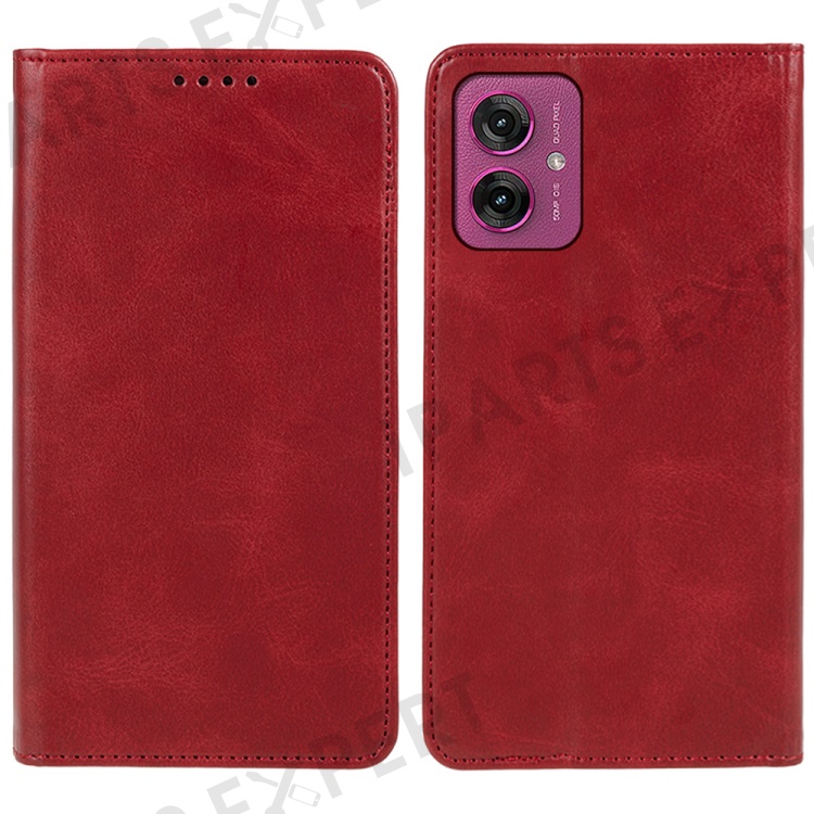 For Motorola Moto G55 5G Case Strong Magnetic PU Leather Phone Cover Calf Texture - Red