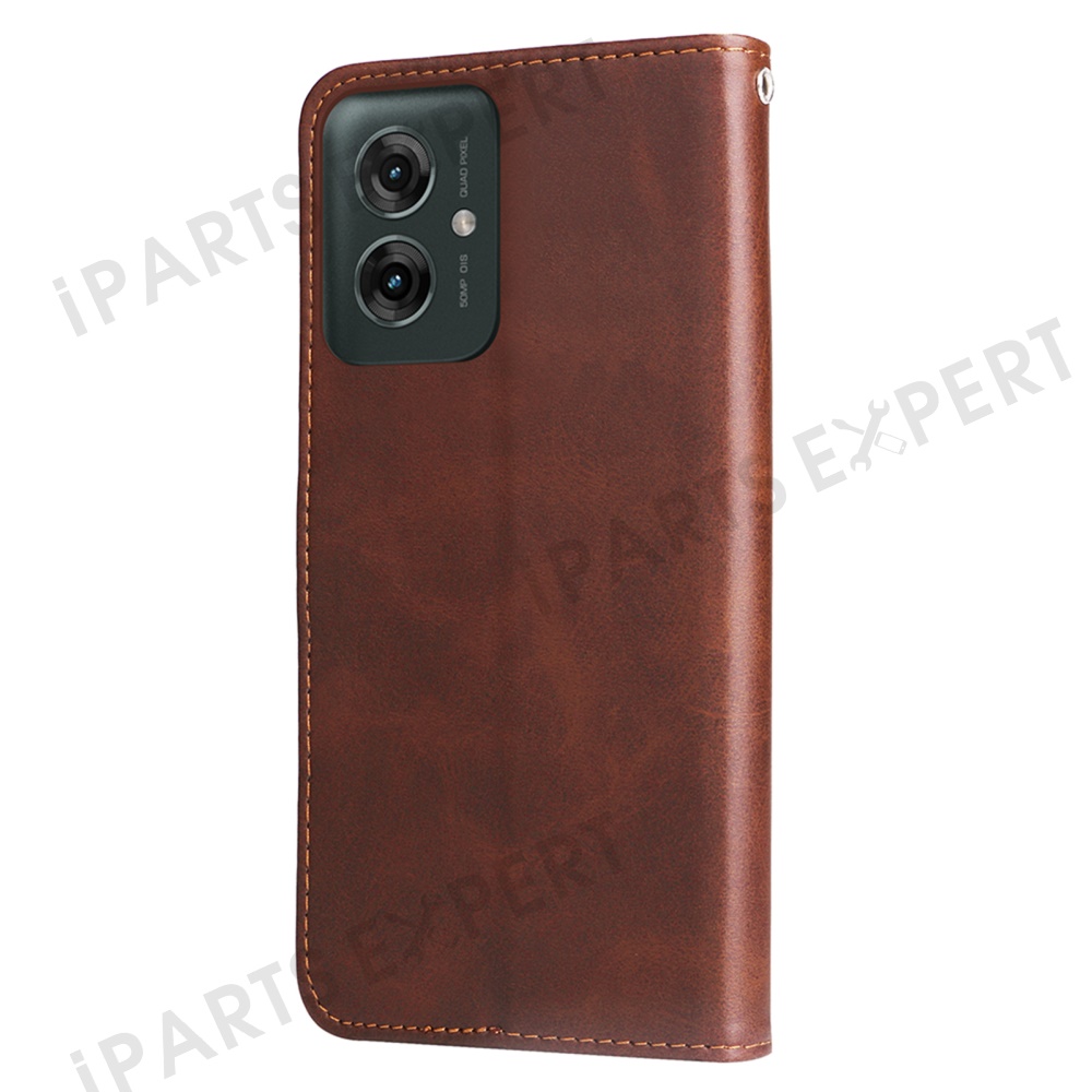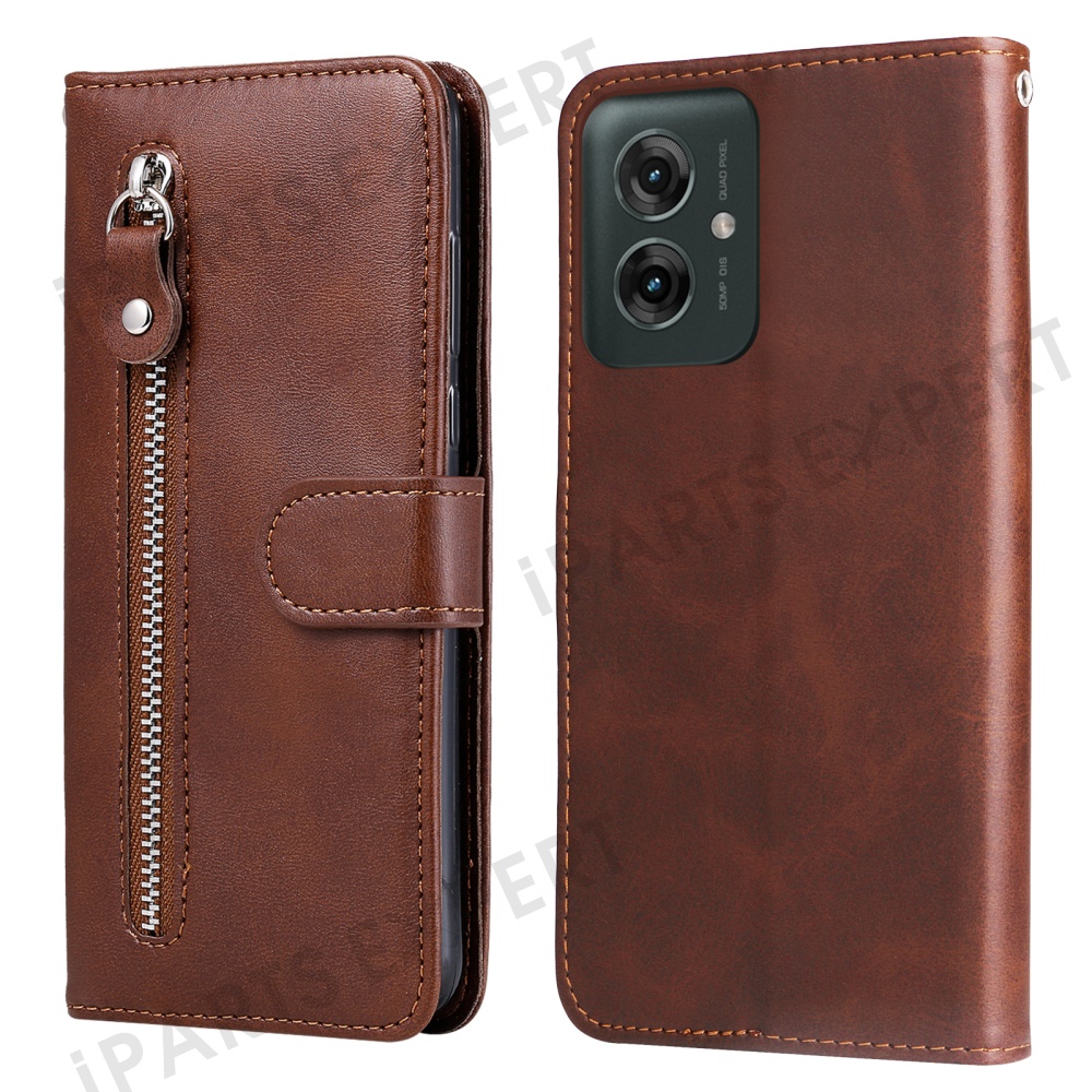 For Motorola Moto G55 5G Case Zipper Wallet Calf Texture PU Leather Phone Cover - Brown