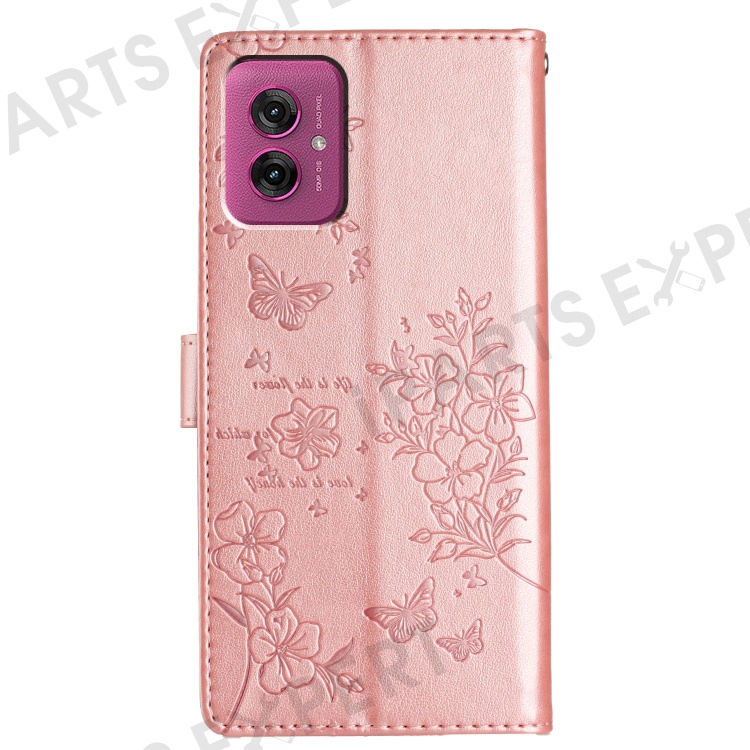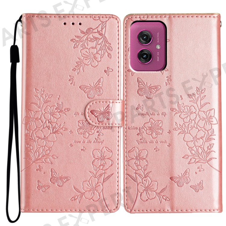 For Motorola Moto G55 5G Wallet Phone Case Butterfly Floral Imprint Leather Flip Cover - Rose Gold