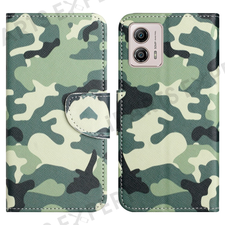 For Motorola Moto G73 5G Leather Stand Phone Case Pattern Printing Cross Texture Anti-drop Wallet Cover - Camouflage