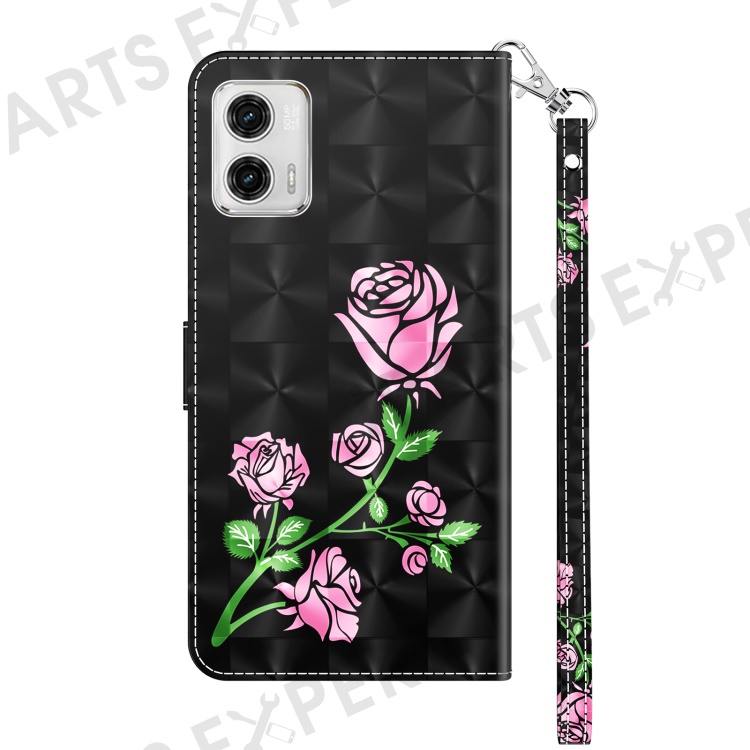 For Motorola Moto G73 5G PU Leather Flip Stand Phone Case 3D Pattern Printing Wallet Shell - Rose Flower