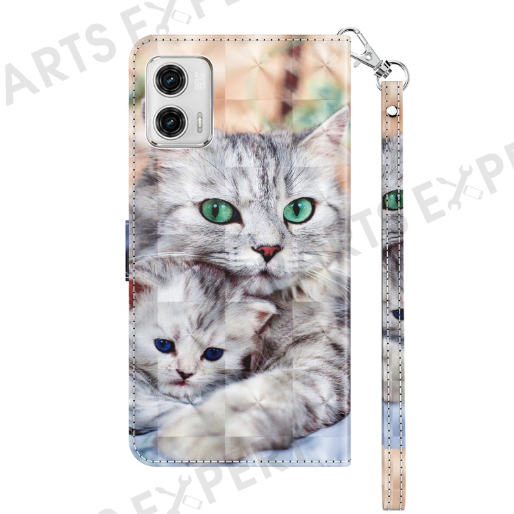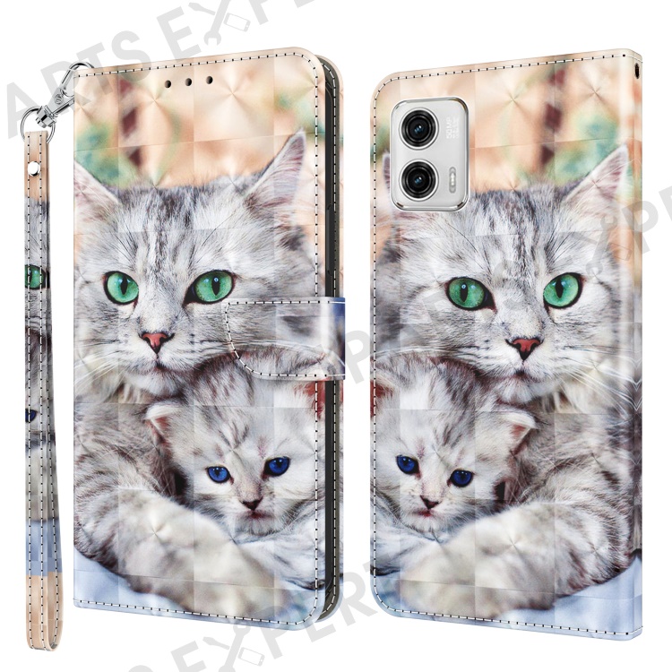 For Motorola Moto G73 5G PU Leather Flip Stand Phone Case 3D Pattern Printing Wallet Shell - Two Cats