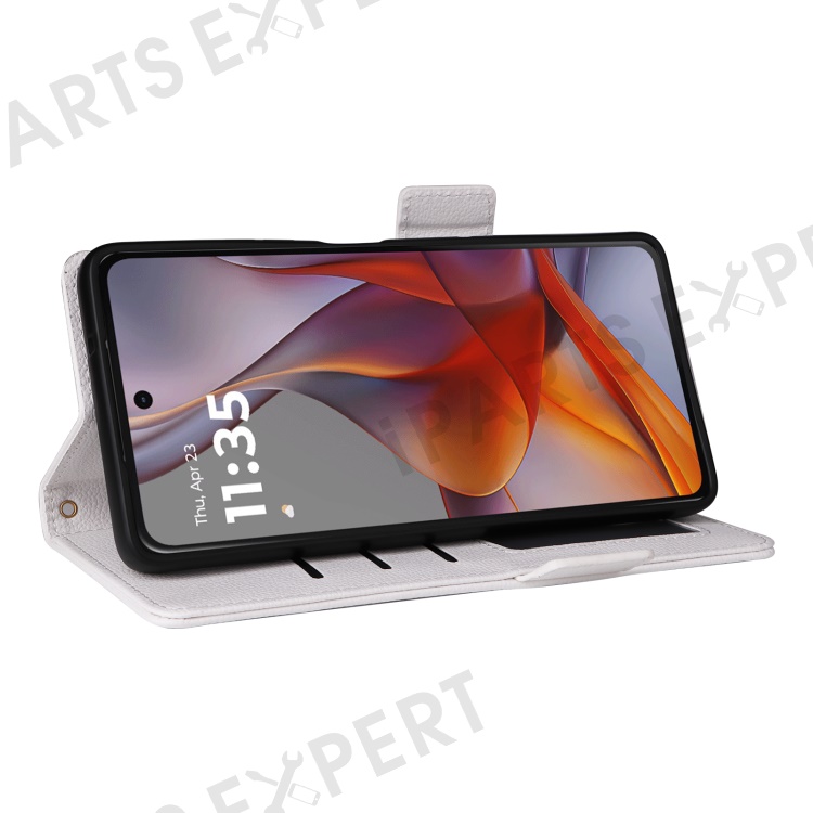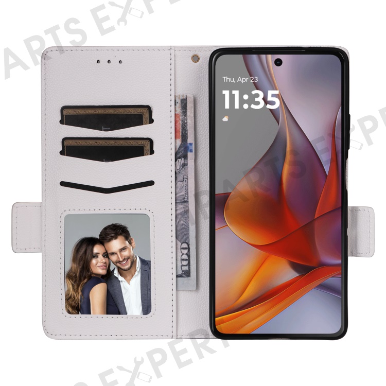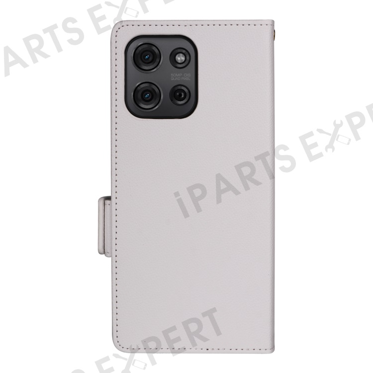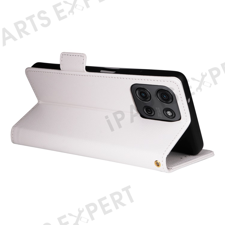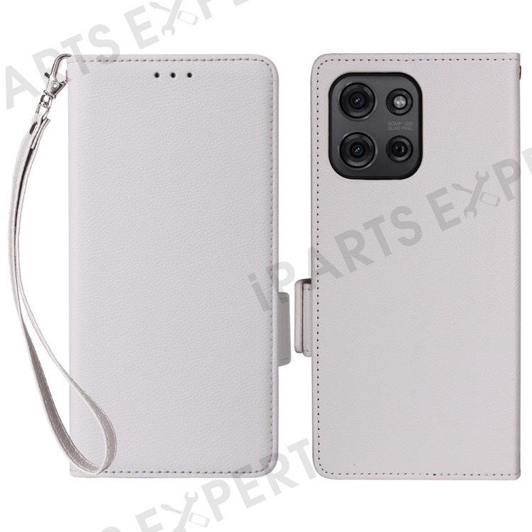 For Motorola Moto G75 5G Case with Wrist Strap Litchi Texture PU Leather Wallet Phone Cover - White
