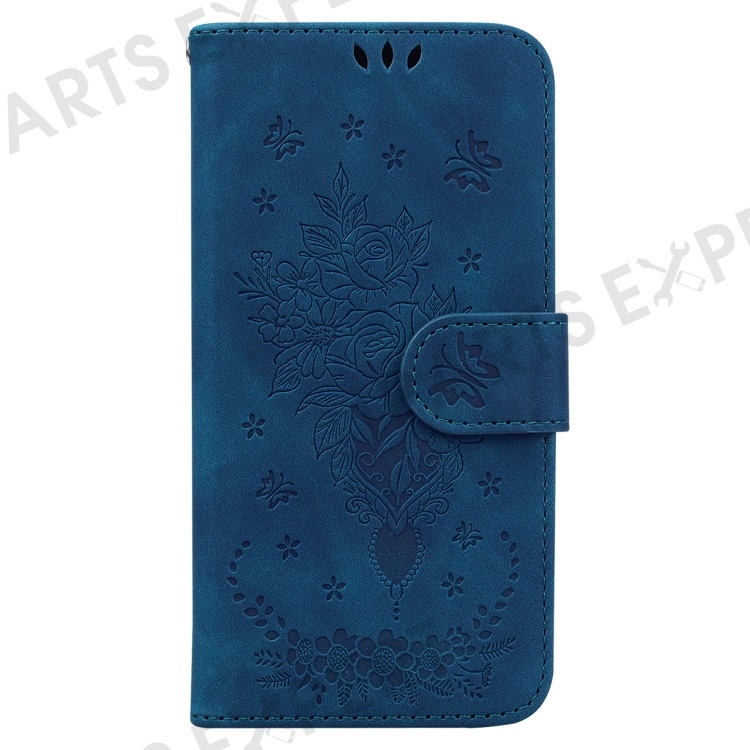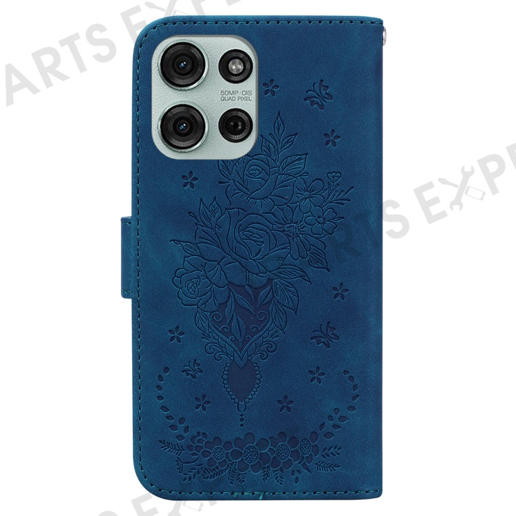 For Motorola Moto G75 5G Case PU Leather Wallet Phone Cover Butterfly Flower Imprint - Blue