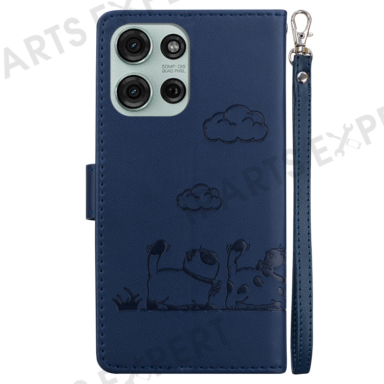For Motorola Moto G75 5G Case RFID Blocking Kitten Pattern TPU+PU Leather Phone Cover - Blue
