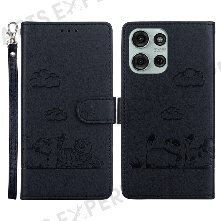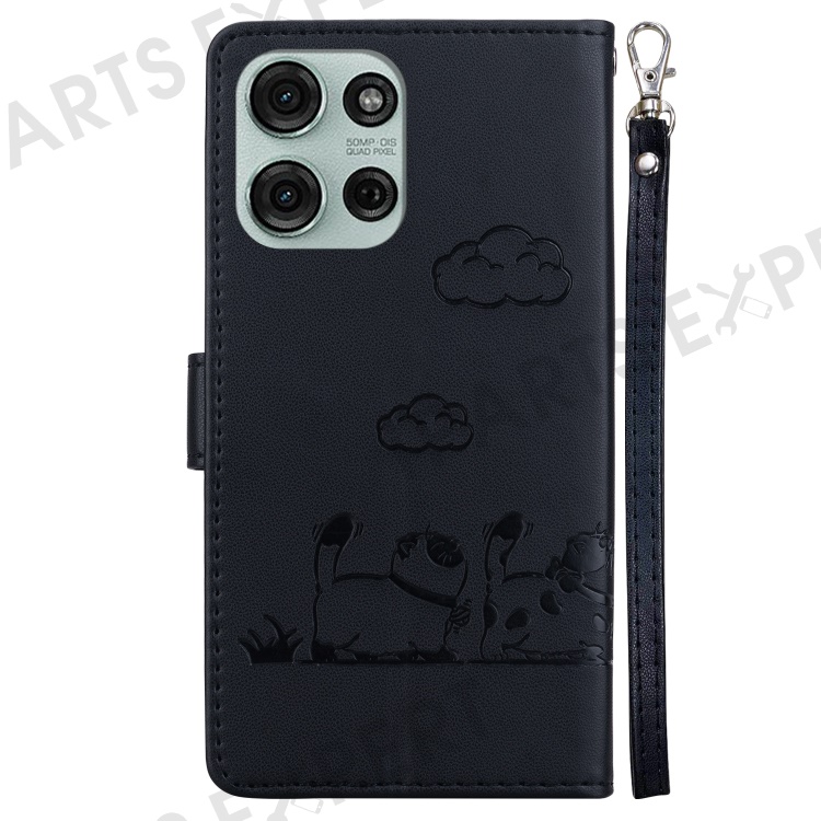 For Motorola Moto G75 5G Case RFID Blocking Kitten Pattern TPU+PU Leather Phone Cover - Brown