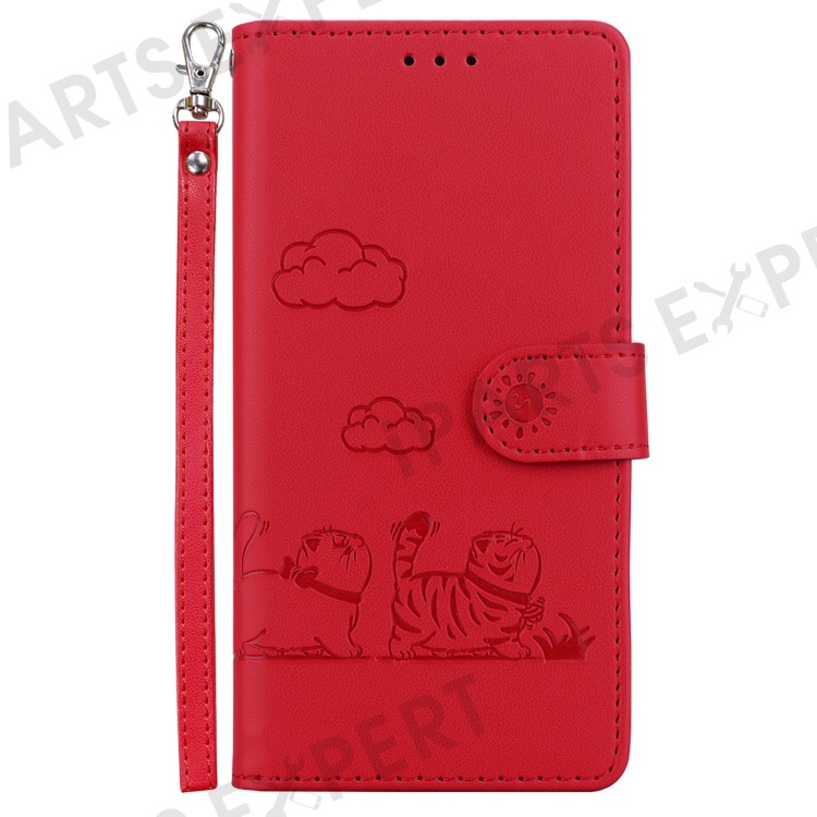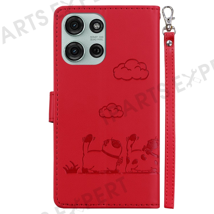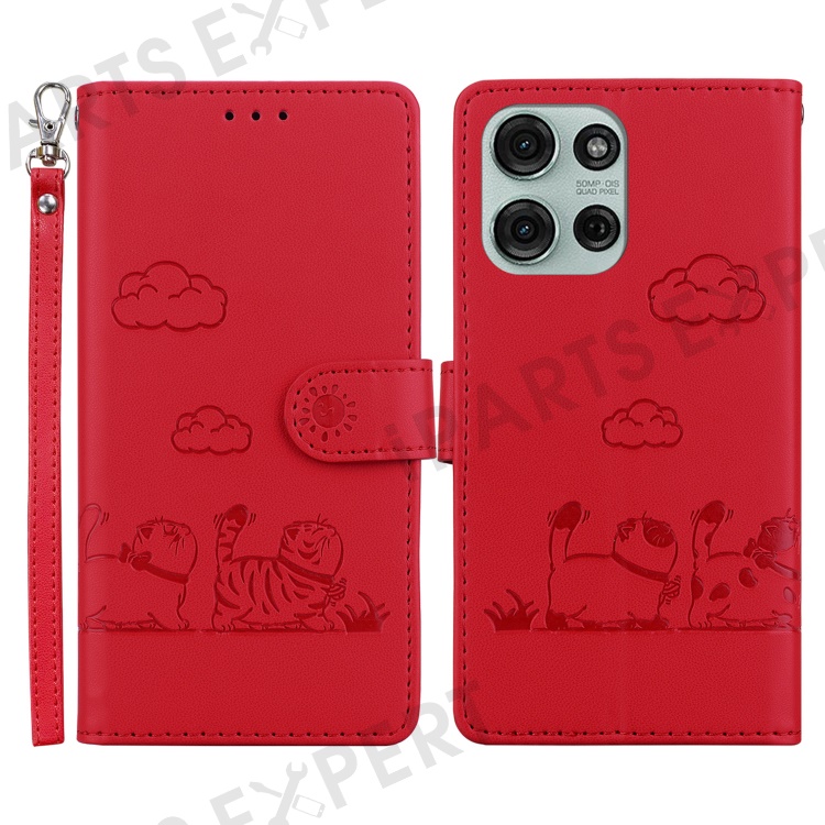 For Motorola Moto G75 5G Case RFID Blocking Kitten Pattern TPU+PU Leather Phone Cover - Red