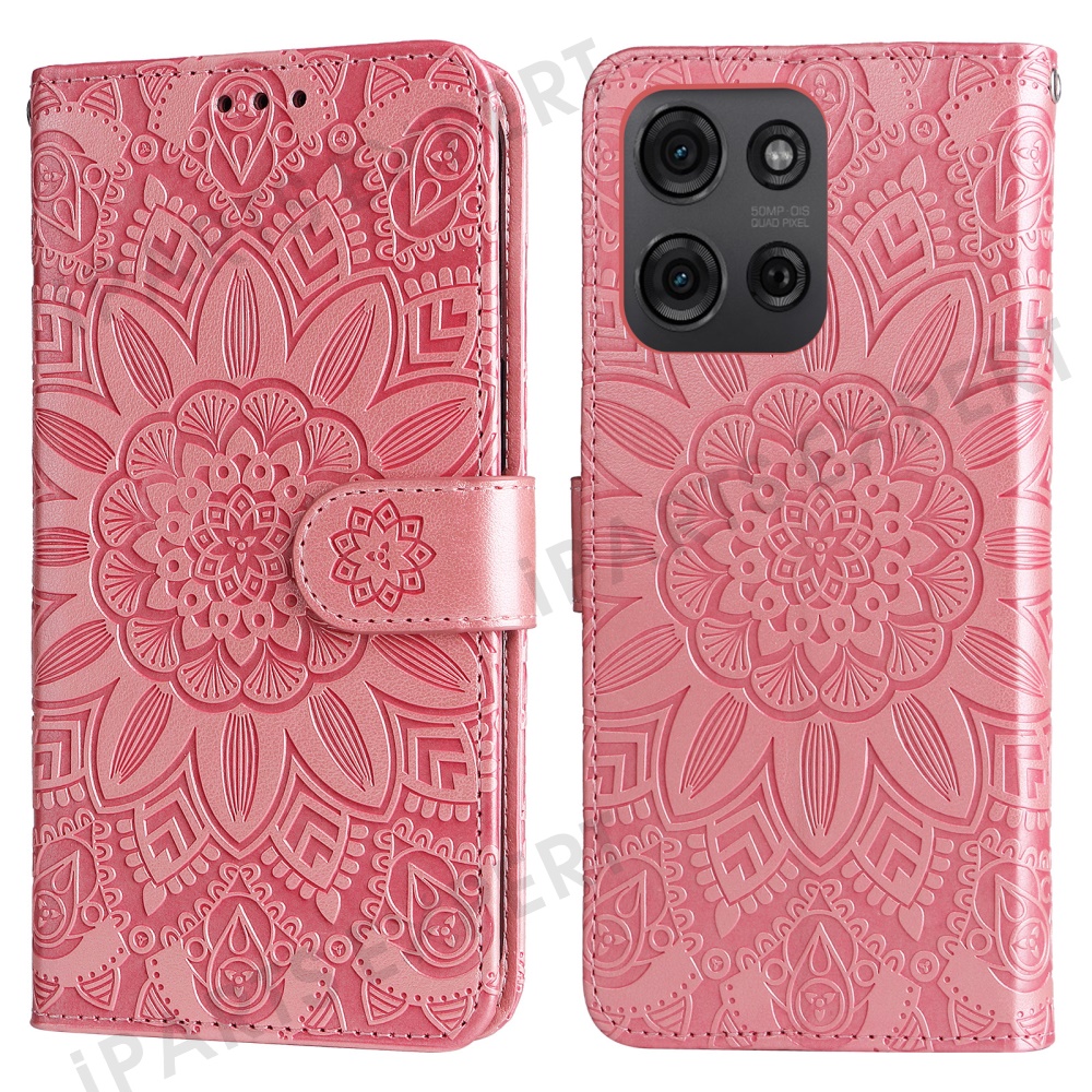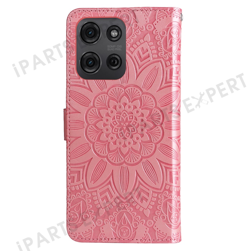 For Motorola Moto G75 5G Case Sunflower Imprint Leather Wallet Phone Cover - Pink
