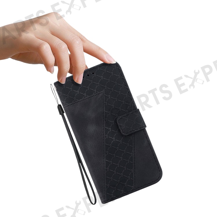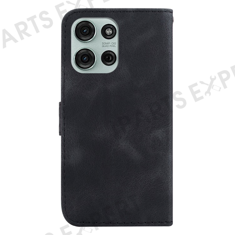 For Motorola Moto G75 5G Stand Case 7-Shaped Pattern Imprint Leather Phone Cover - Black