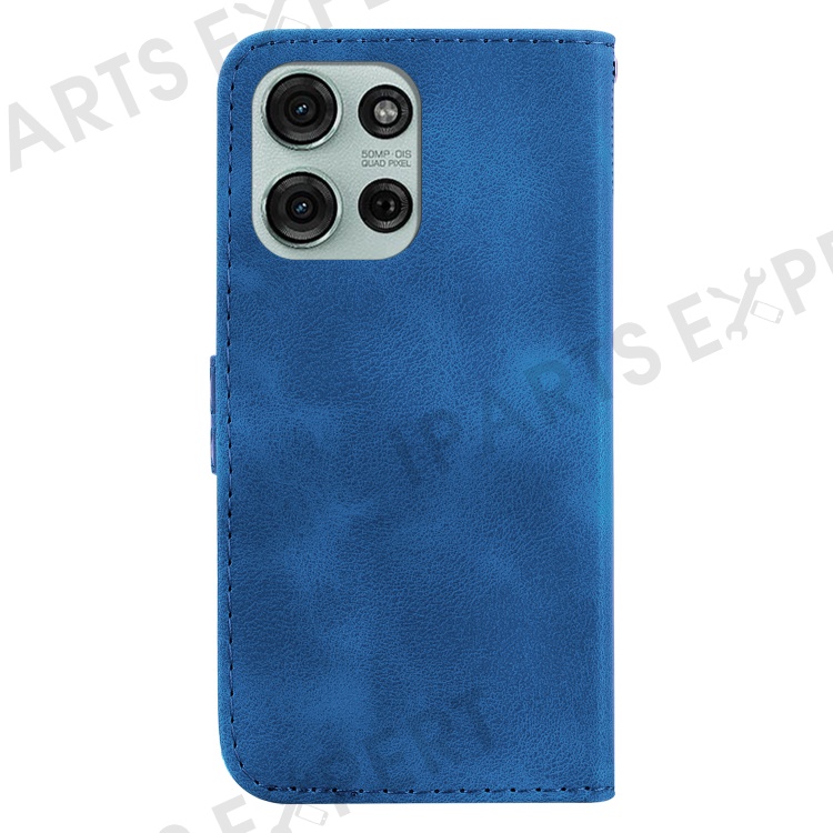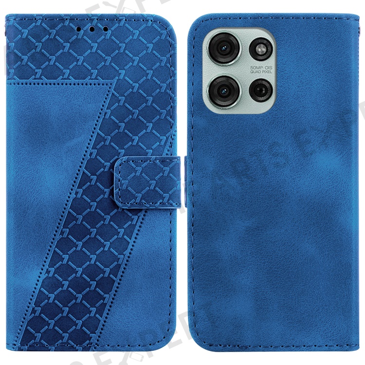 For Motorola Moto G75 5G Stand Case 7-Shaped Pattern Imprint Leather Phone Cover - Dark Blue