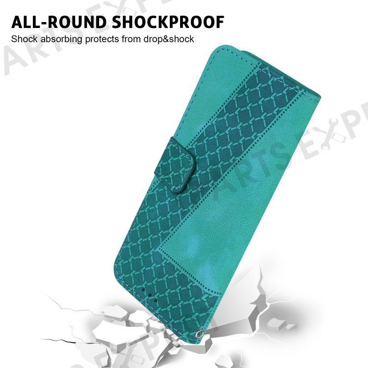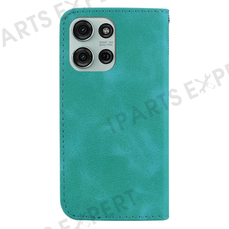 For Motorola Moto G75 5G Stand Case 7-Shaped Pattern Imprint Leather Phone Cover - Green