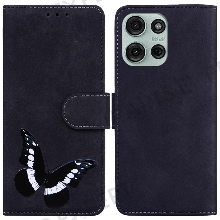 For Motorola Moto G75 5G Stand Case PU Leather Phone Cover Butterfly Printed - Black