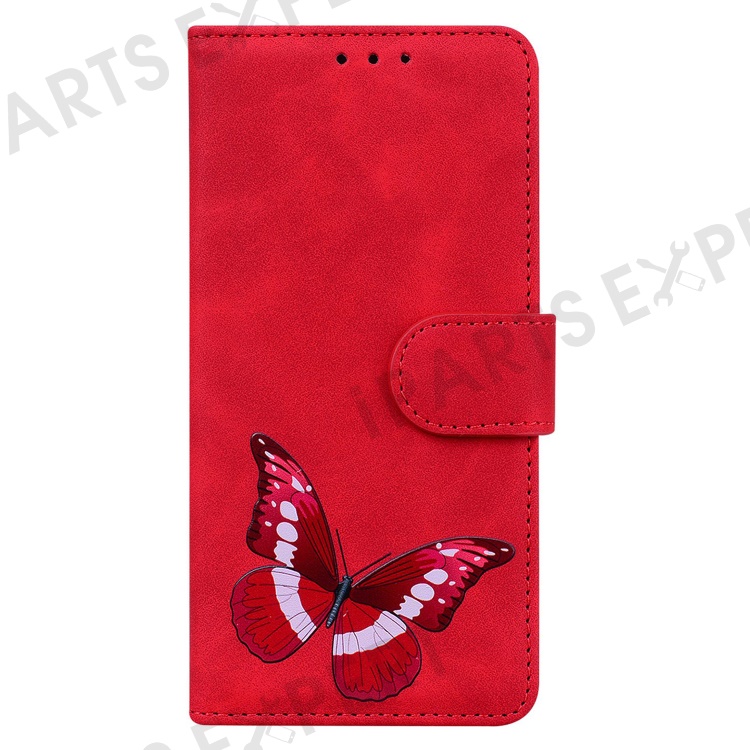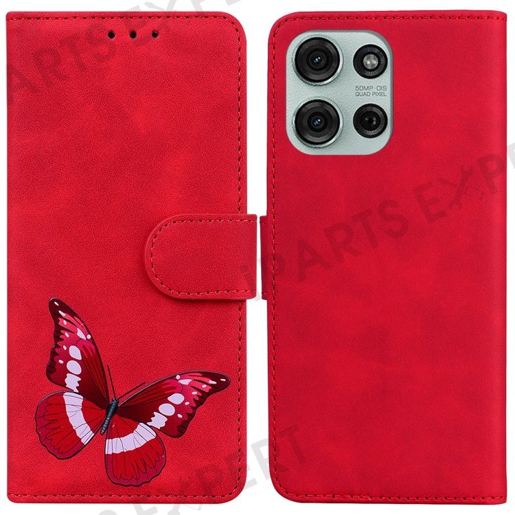 For Motorola Moto G75 5G Stand Case PU Leather Phone Cover Butterfly Printed - Red