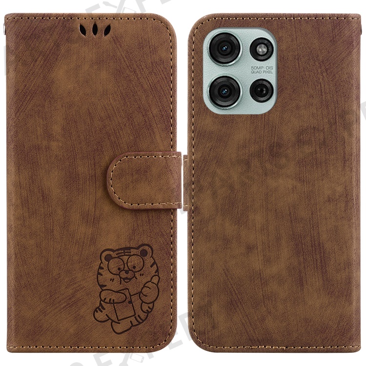 For Motorola Moto G75 5G Wallet Case Tiger Imprint Leather Shockproof Phone Cover - Brown