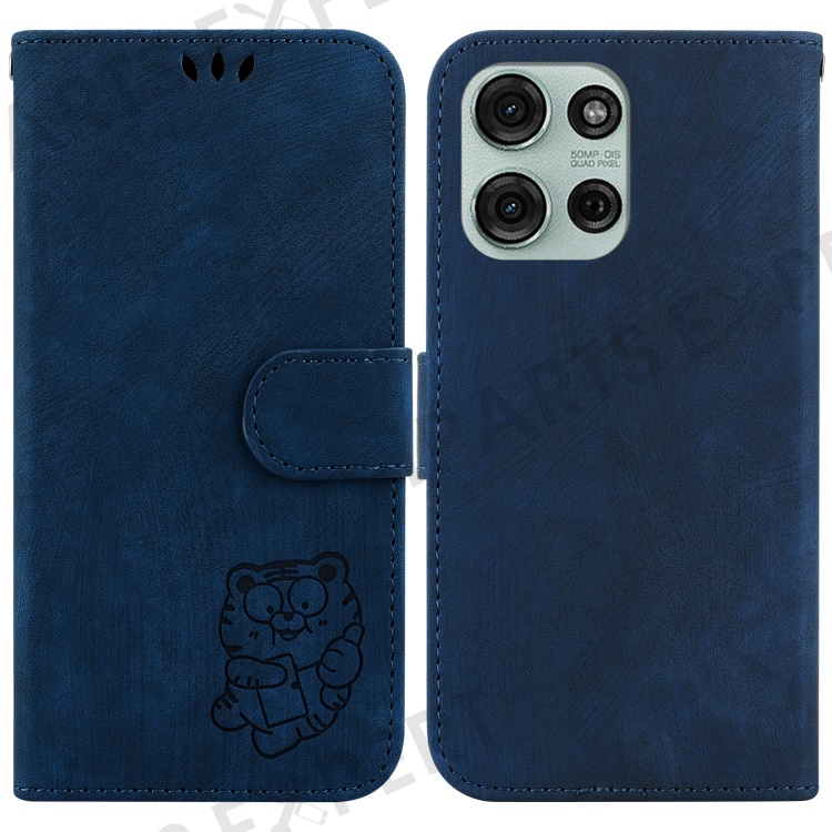 For Motorola Moto G75 5G Wallet Case Tiger Imprint Leather Shockproof Phone Cover - Dark Blue