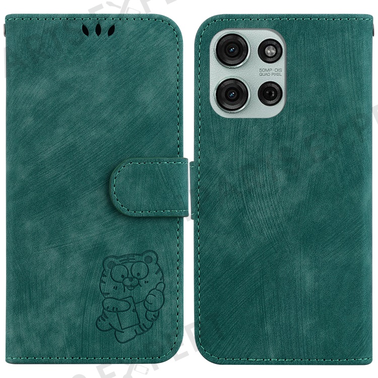 For Motorola Moto G75 5G Wallet Case Tiger Imprint Leather Shockproof Phone Cover - Green