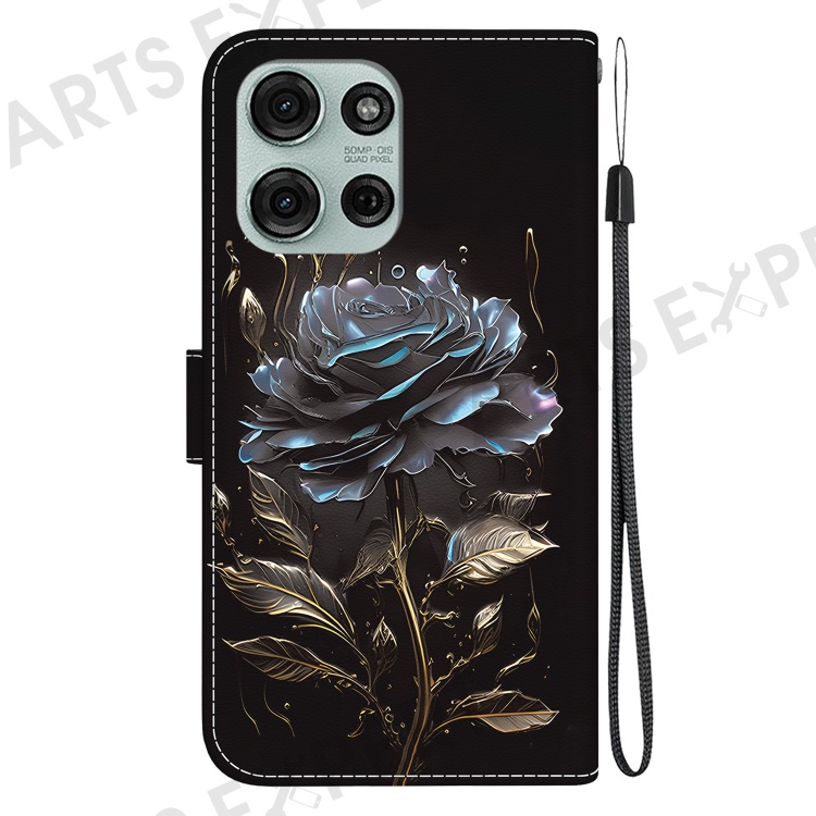 For Motorola Moto G75 5G Wallet Phone Case Anti-Drop Leather Flip Cover Pattern Printing - Black Rose